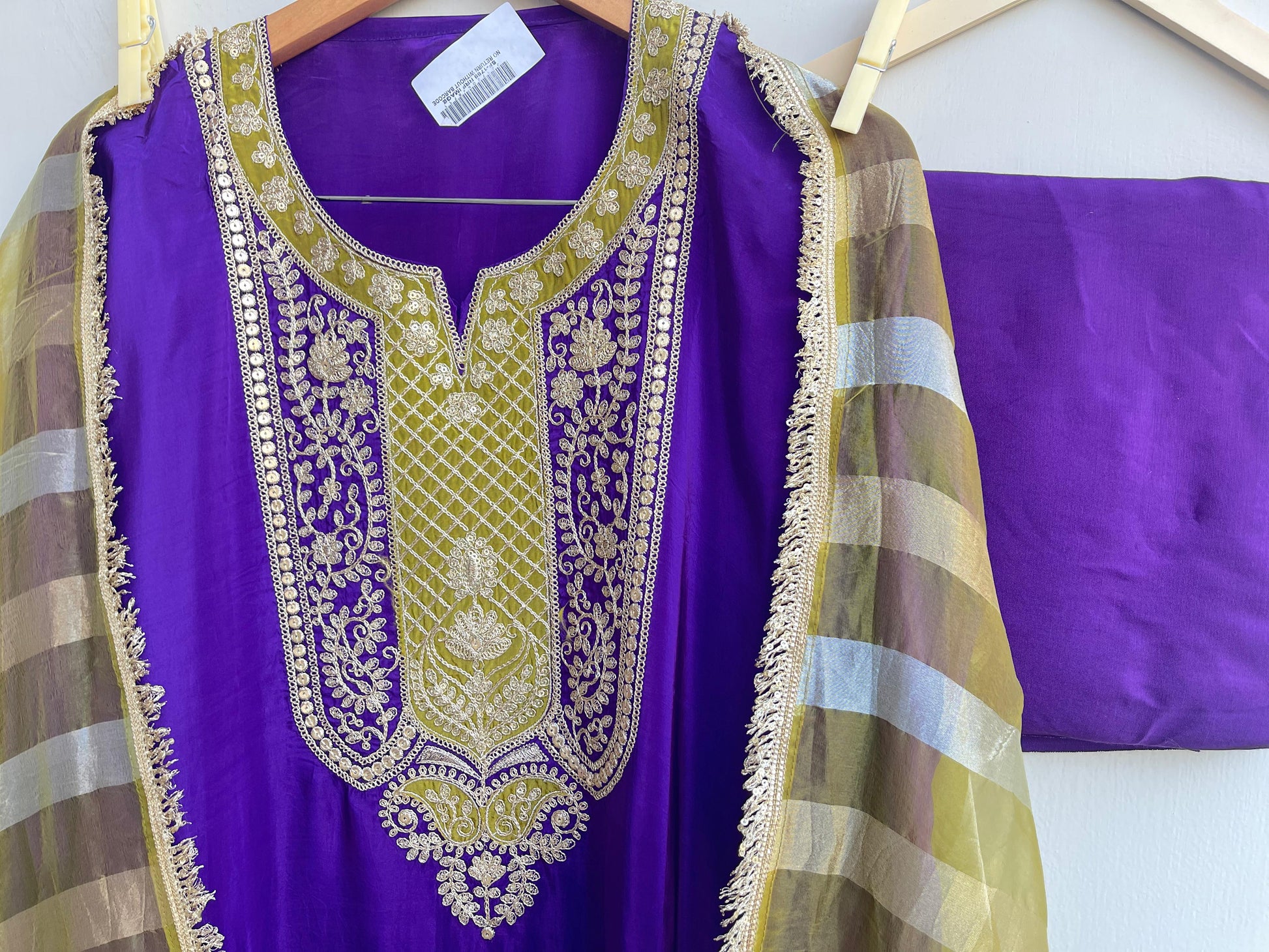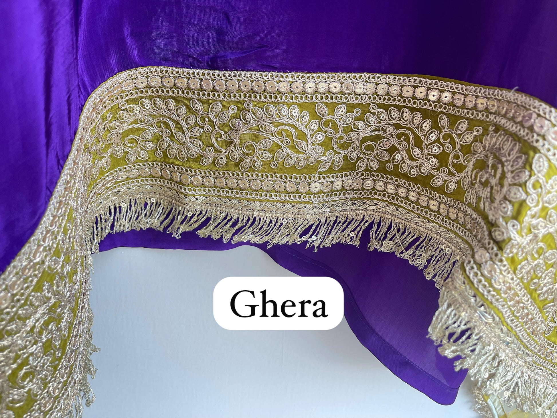 😊 silk fabric unstitched shirt with zari sequence embroidery and tassel ghera lace with sequence highlighting