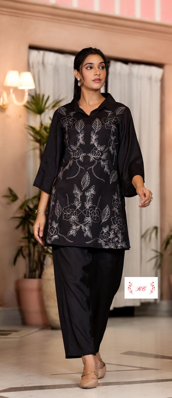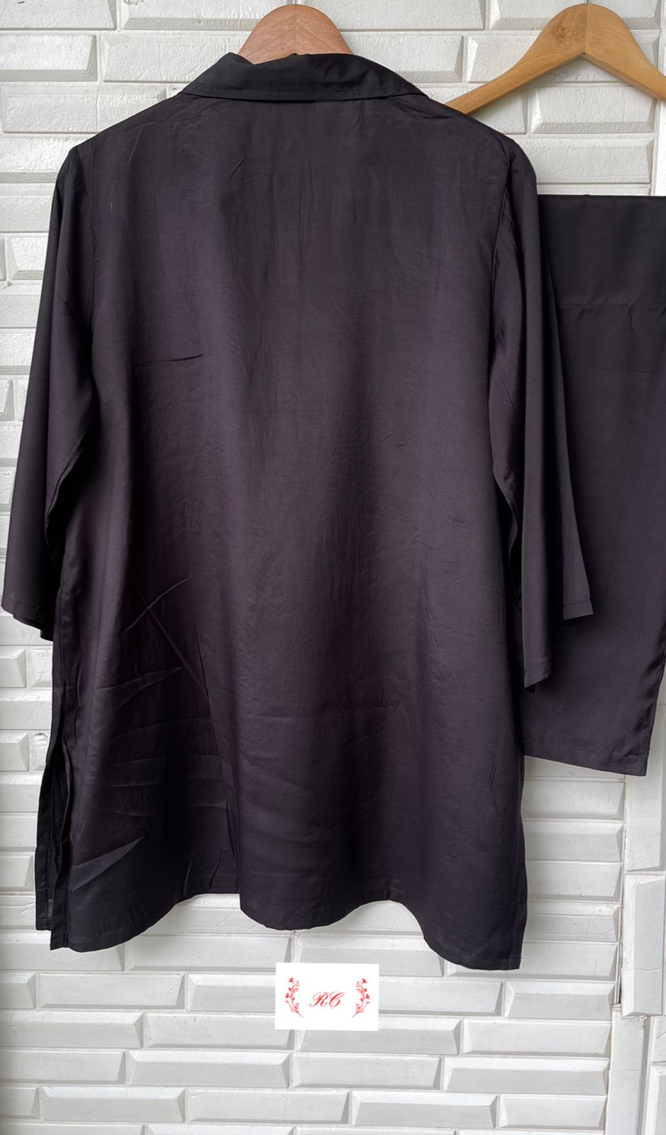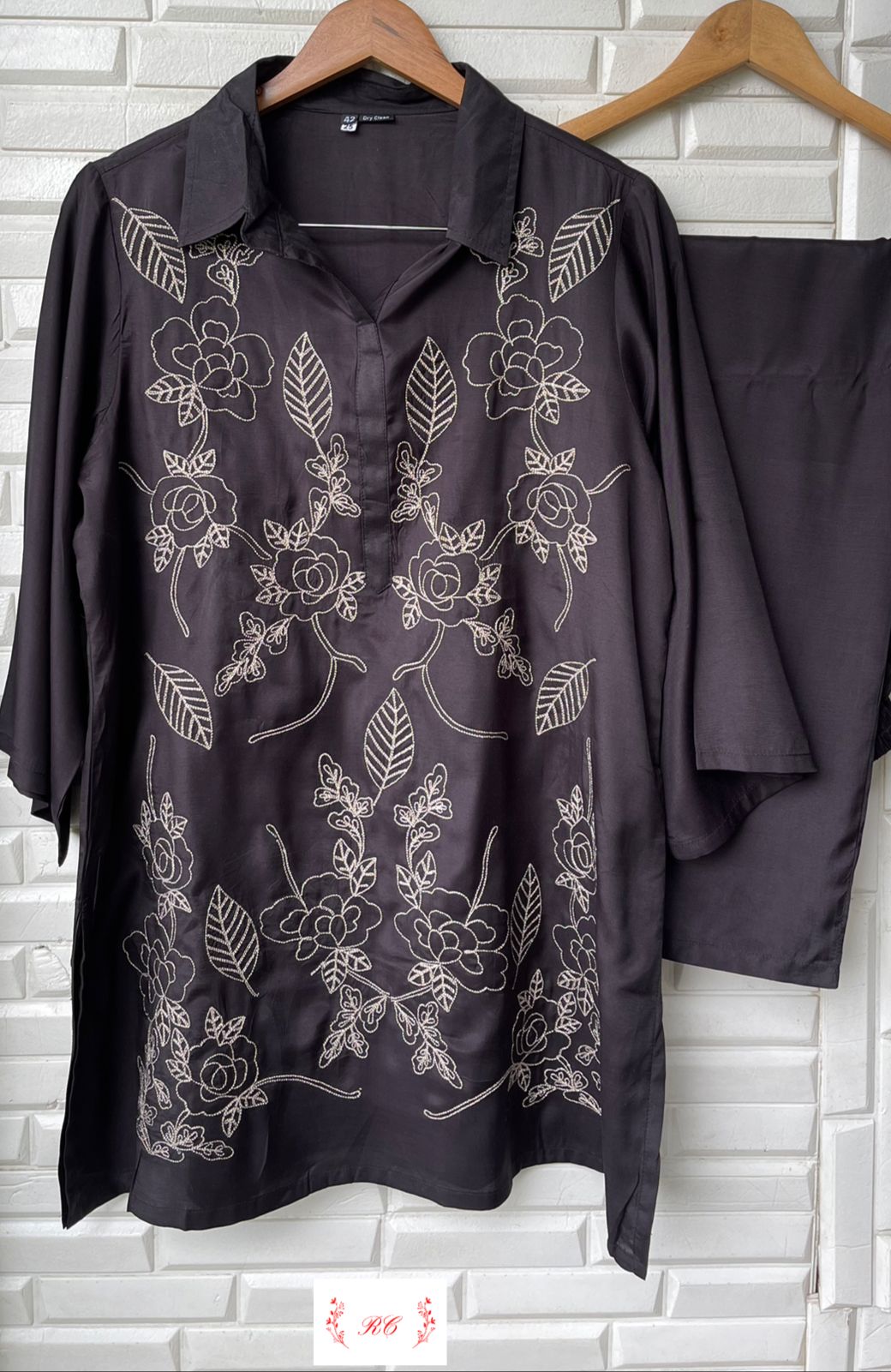😊 silk fabric stitched coord set shirt with zari embroidery plus attached lining