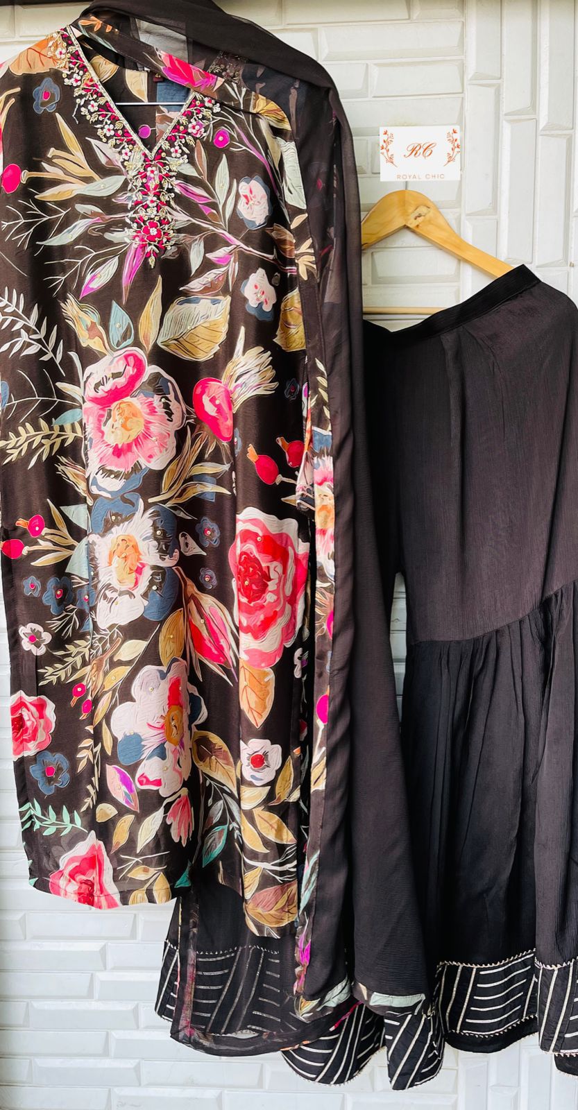 😊 pure silk printed fabric stitched shirt with attached lining and sequence kutdanna resham zari dabka embroidery