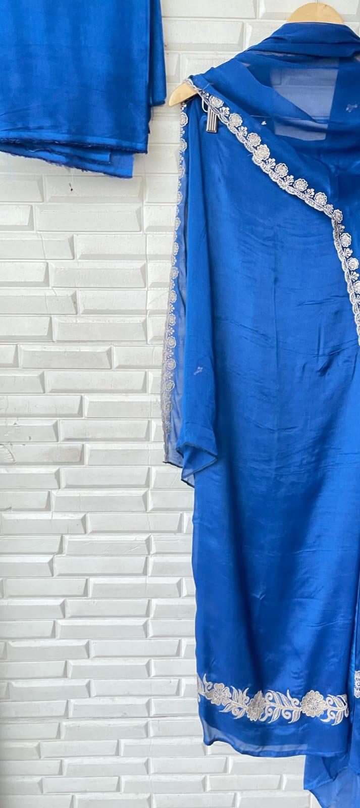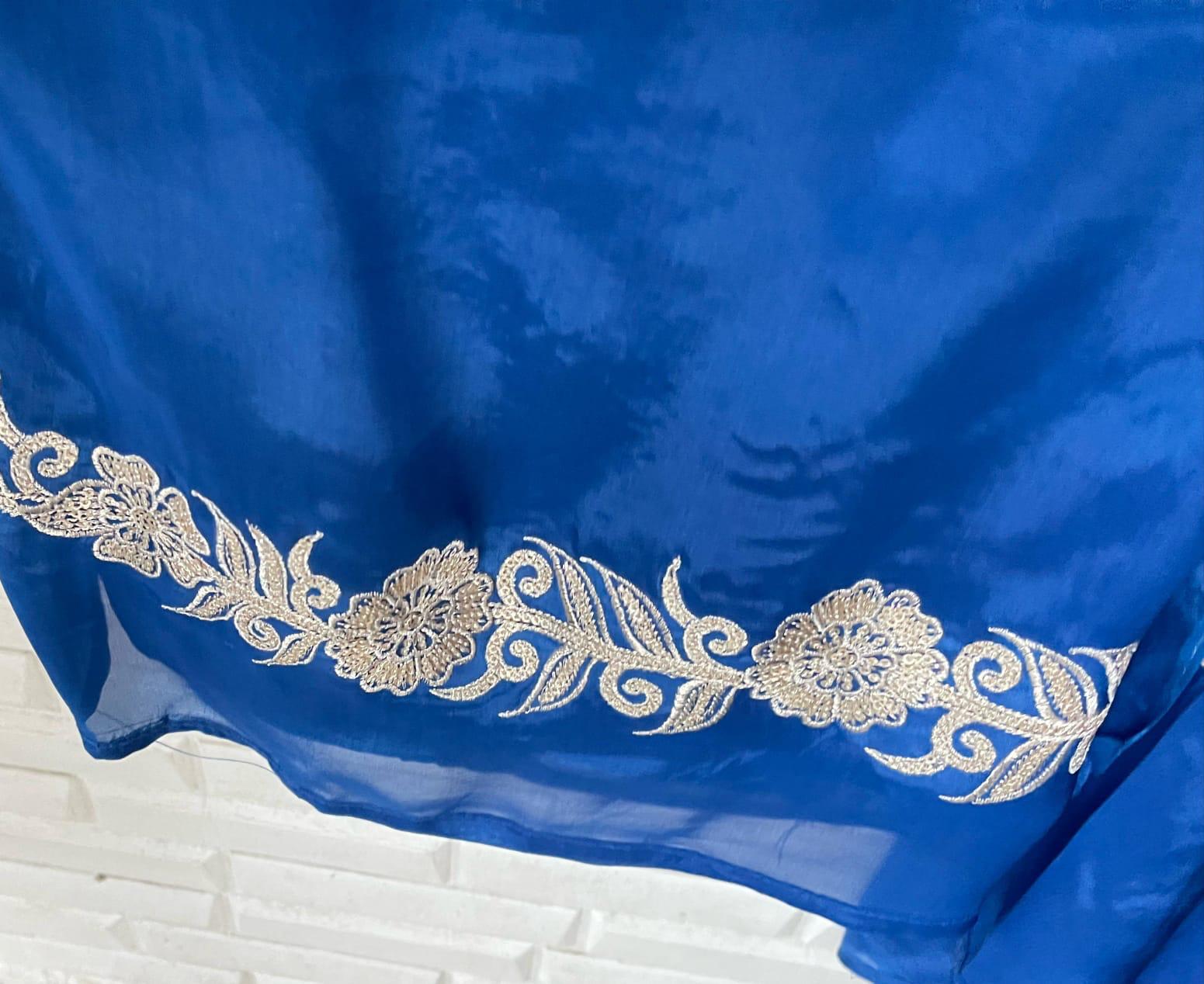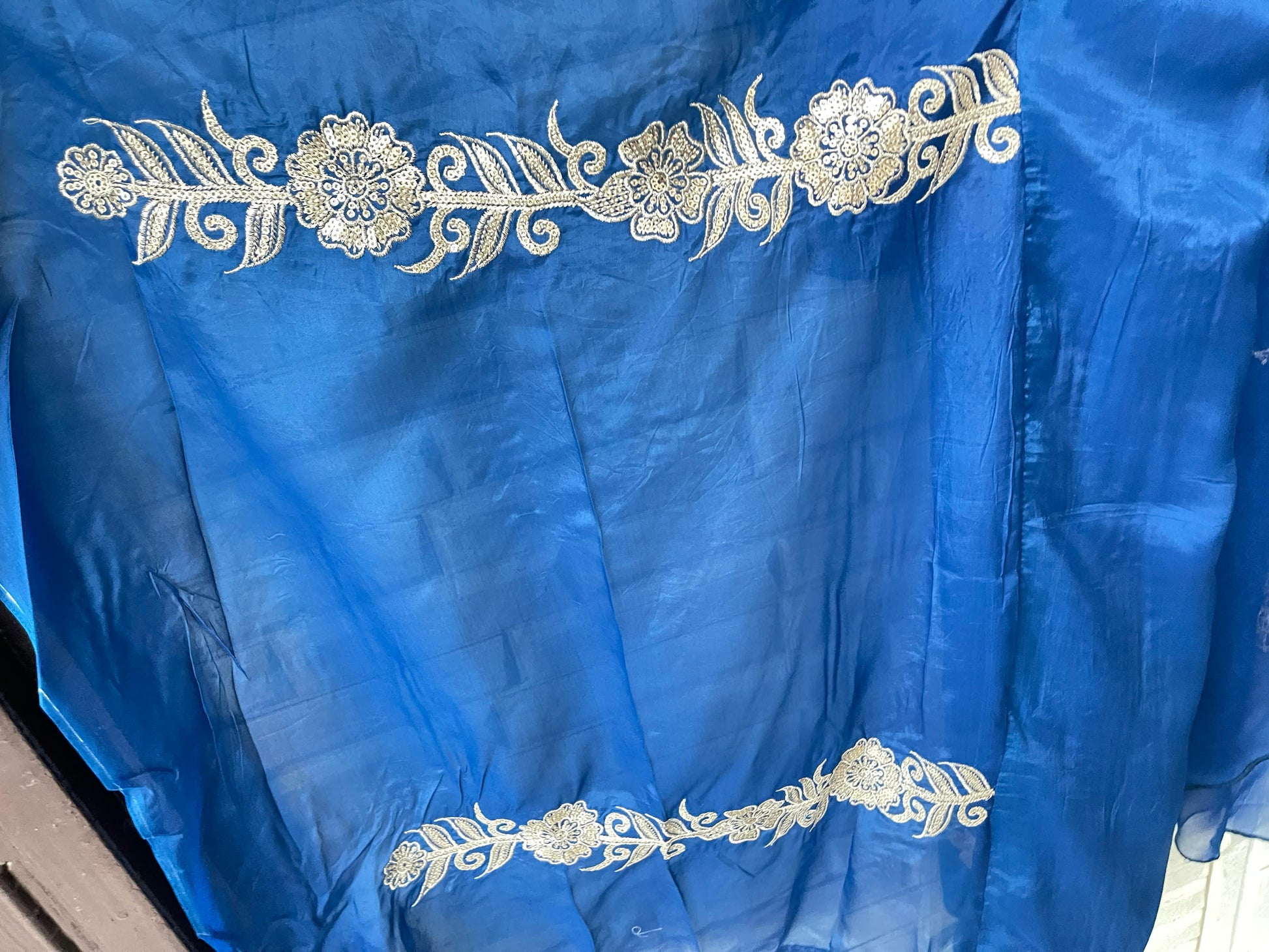😊 silk fabric unstitched shirt with sequence zari embroidery on sleeves on ghera