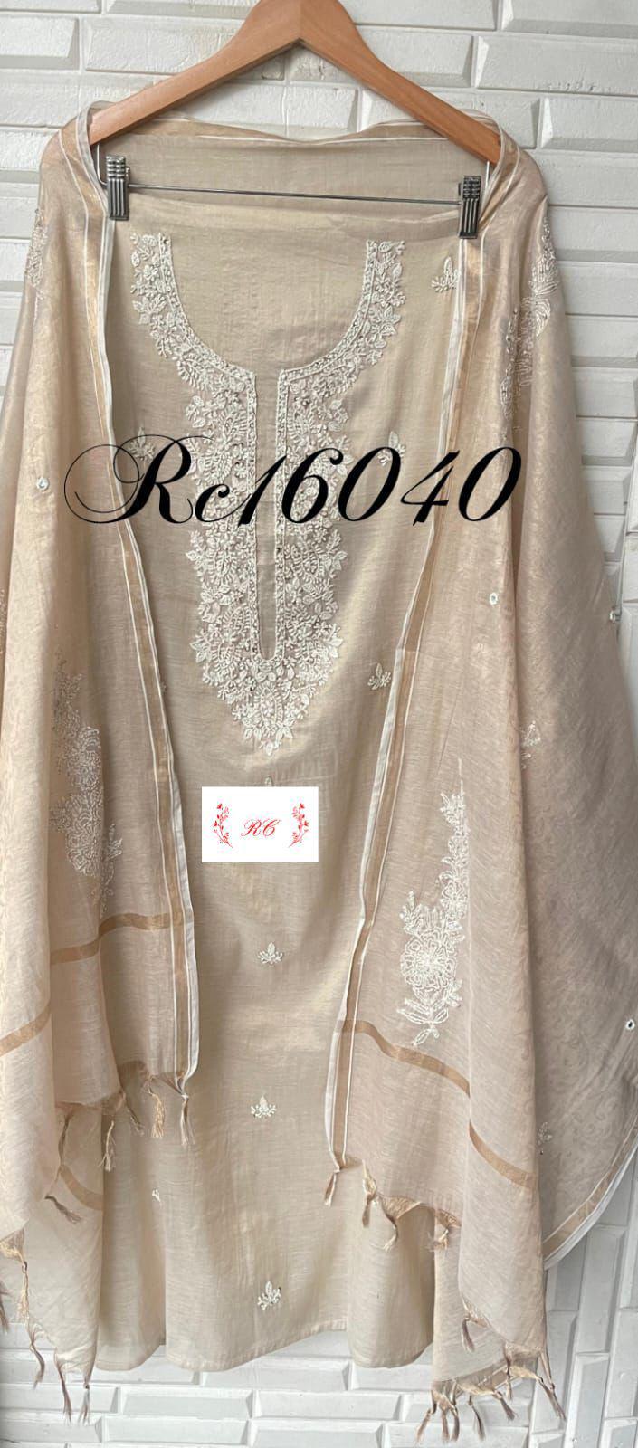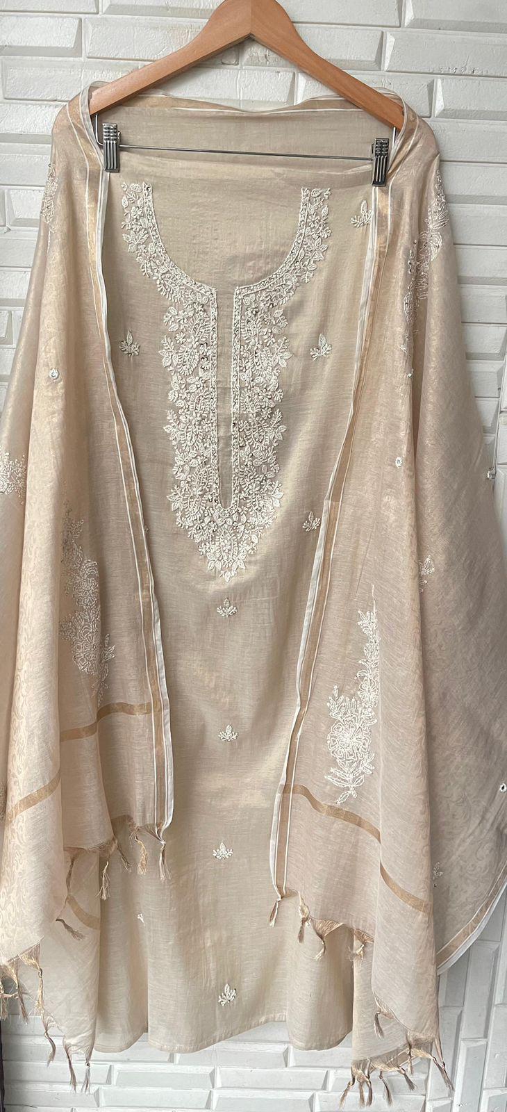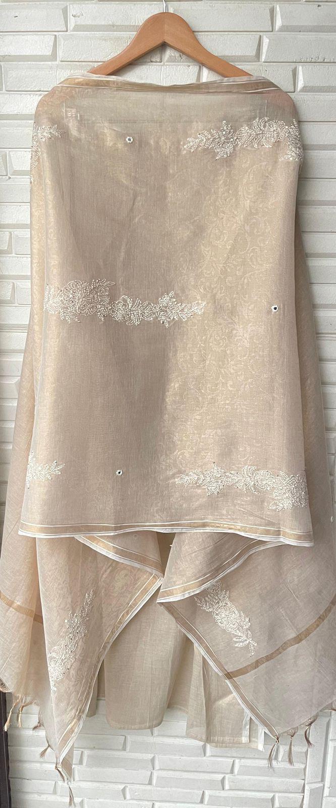 ☺️ pure shimmer silk linen fabric dupatta with sequence resham embroidery