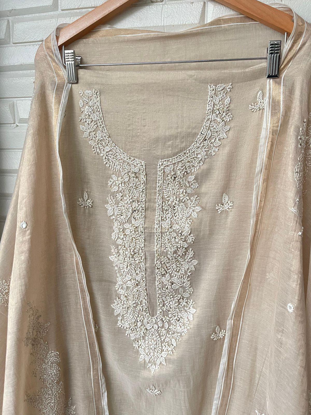 😊 pure shimmer silk fabric unstitched shirt with sequence resham embroidery