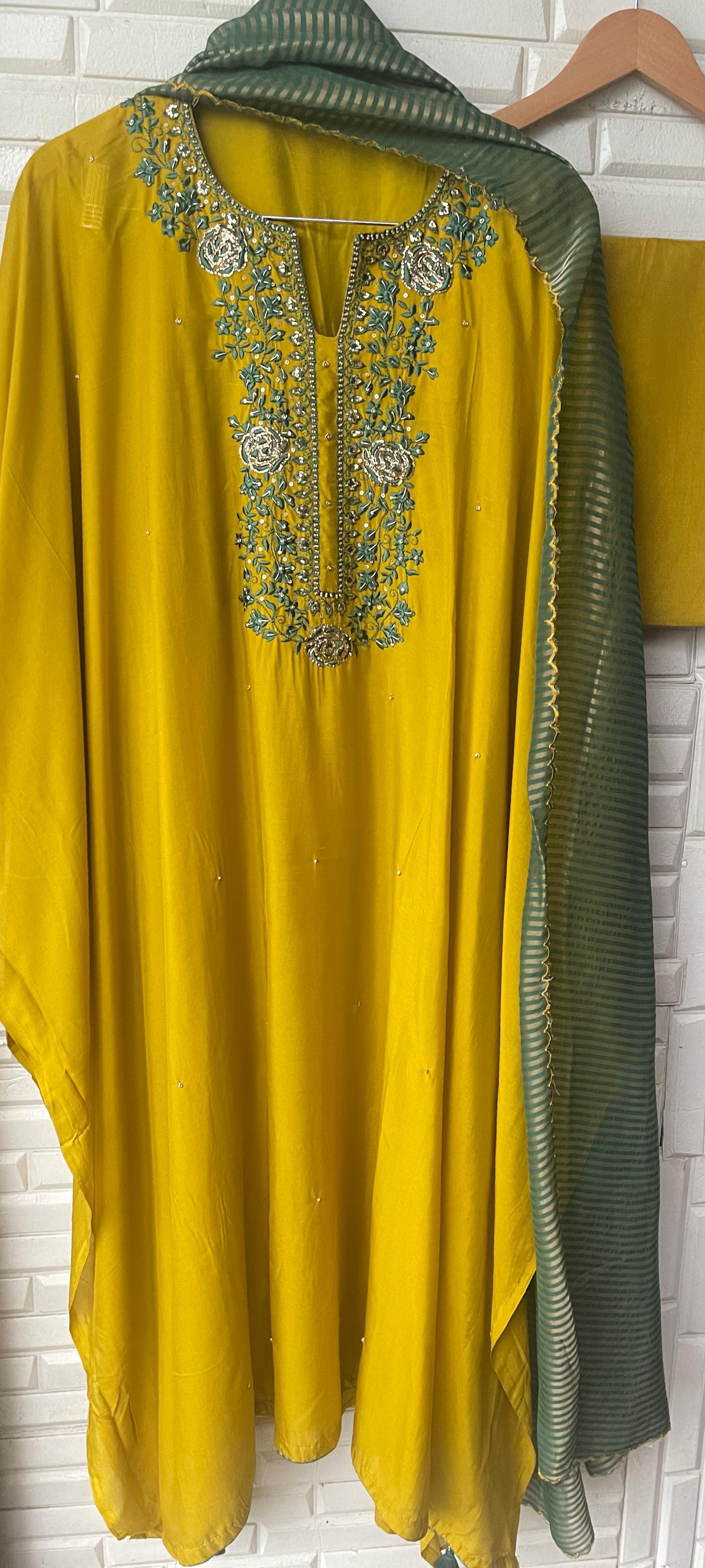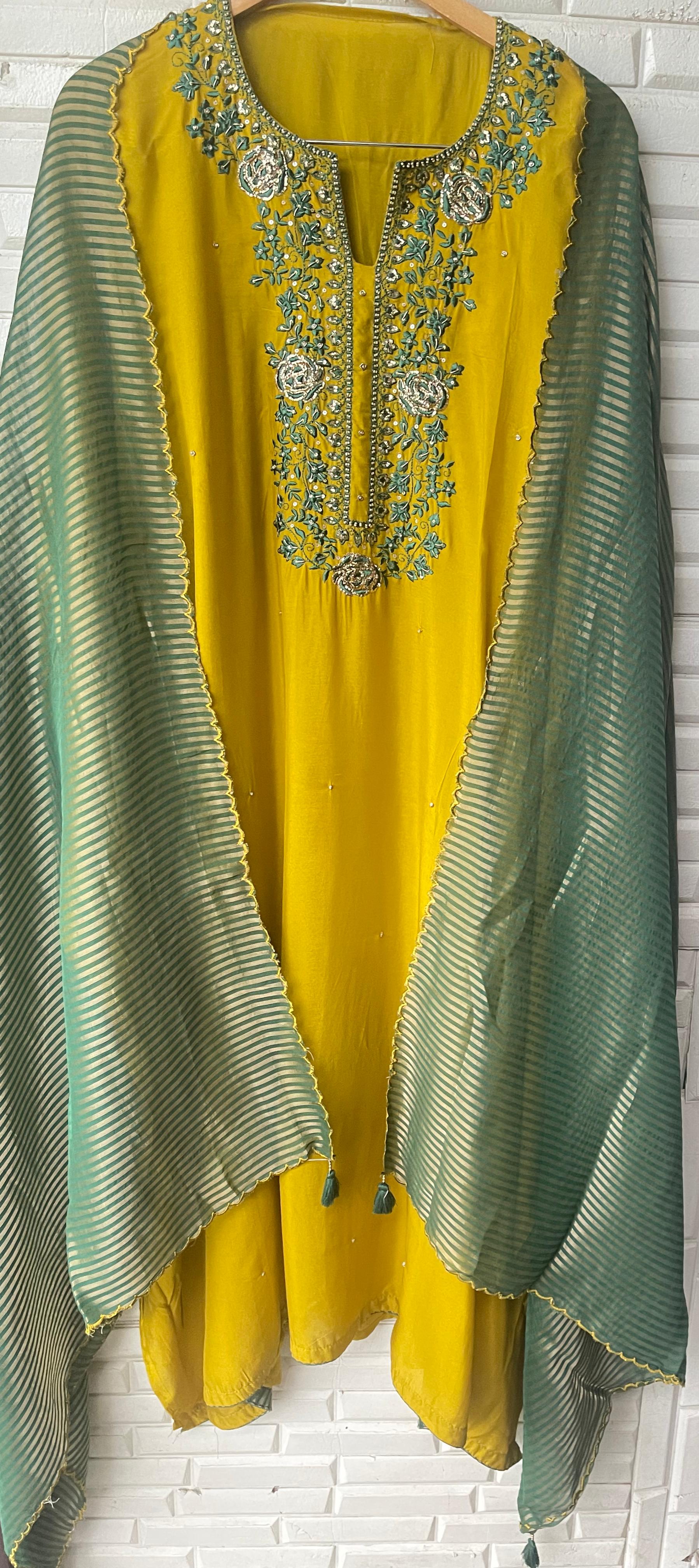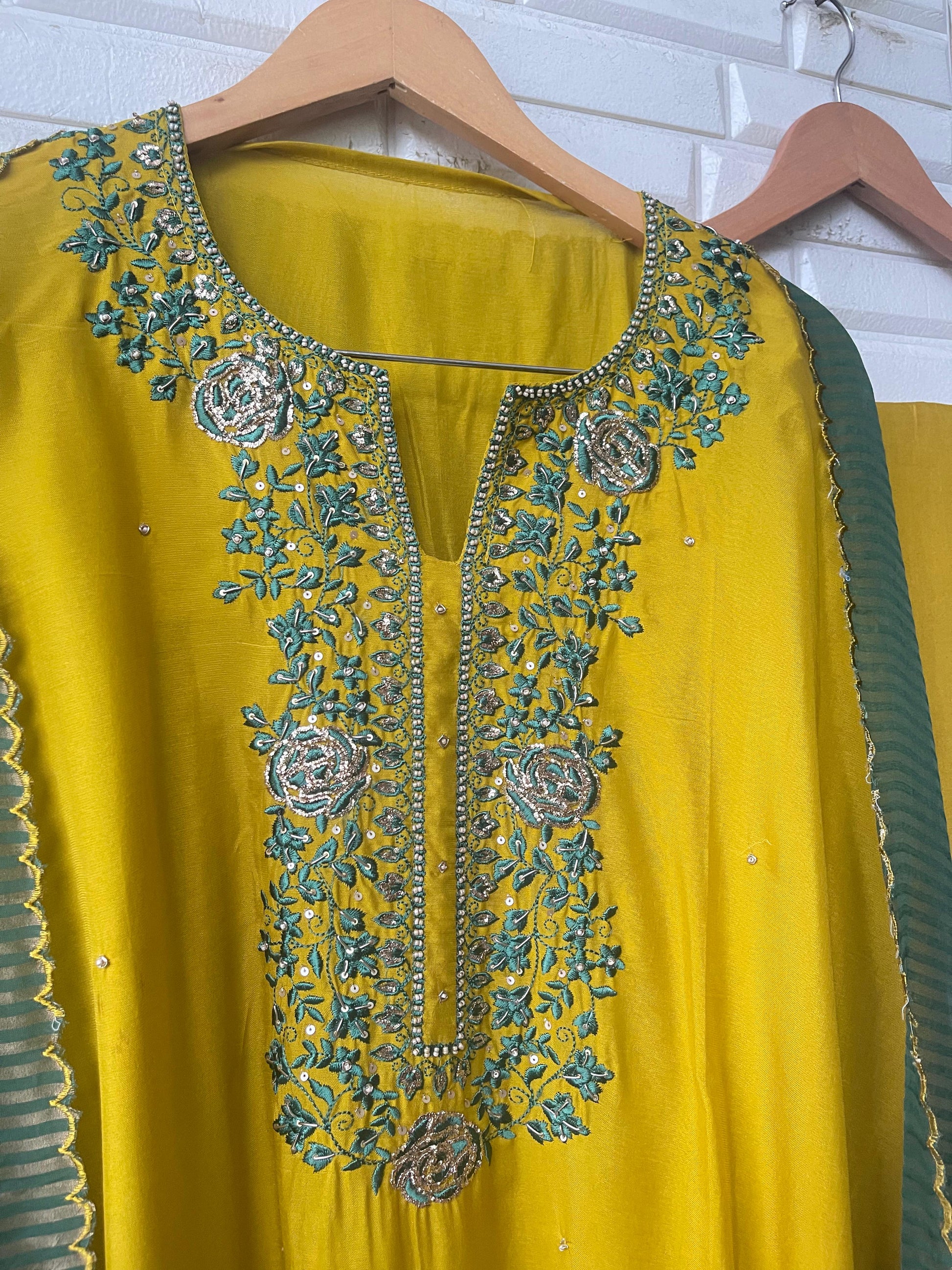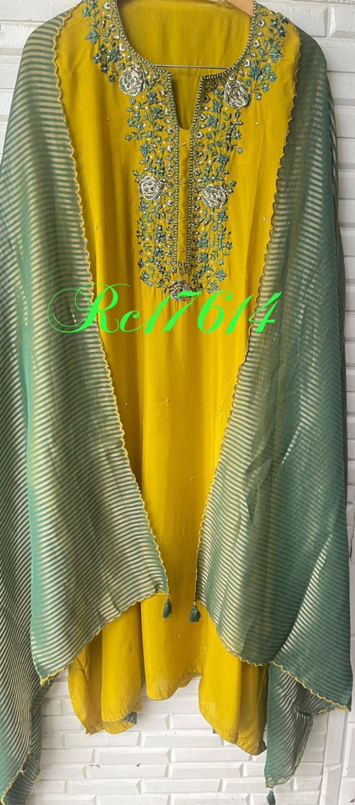 π pure silk fabric unstitched shirt with gotta lace work pearl dabka resham intricate embroidery