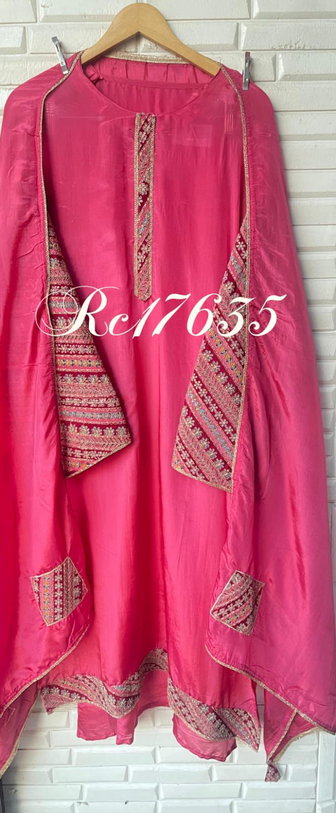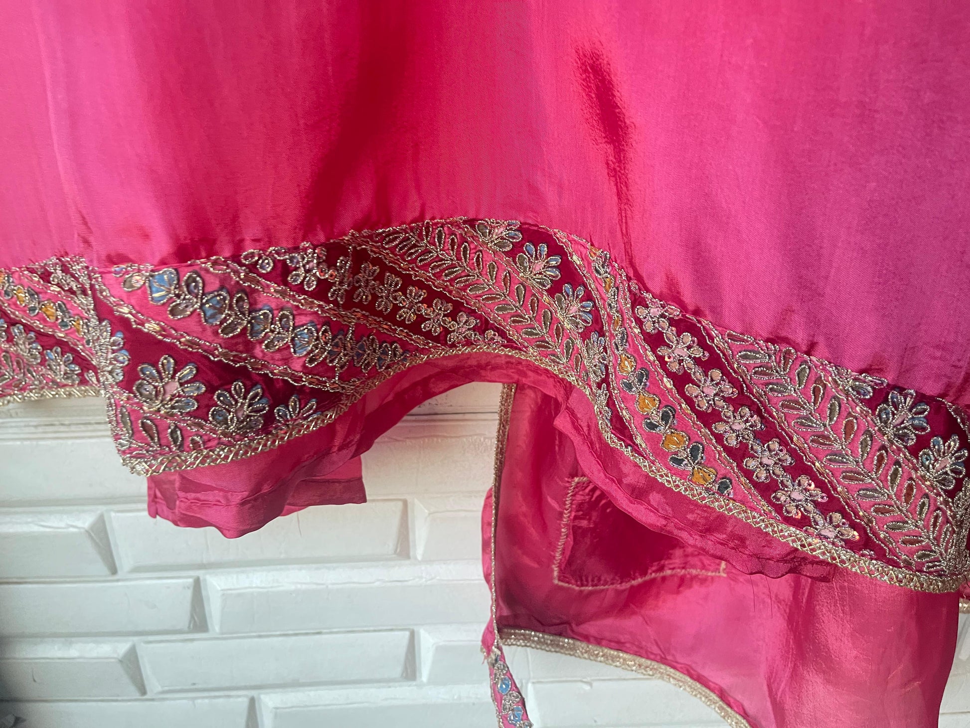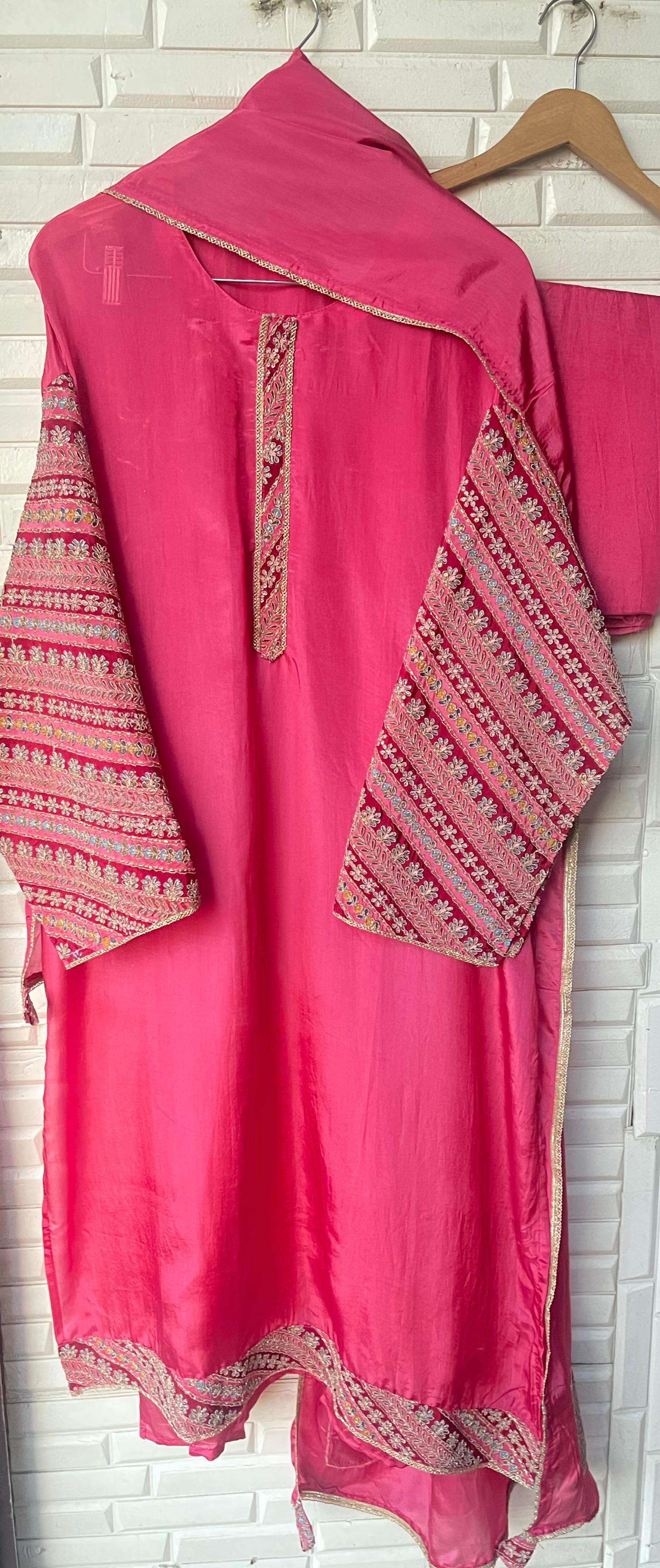 😊 pure silk fabric unstitched shirt with sequence resham zari Dabka embroidery lon daaman on kurta patti and sleeves