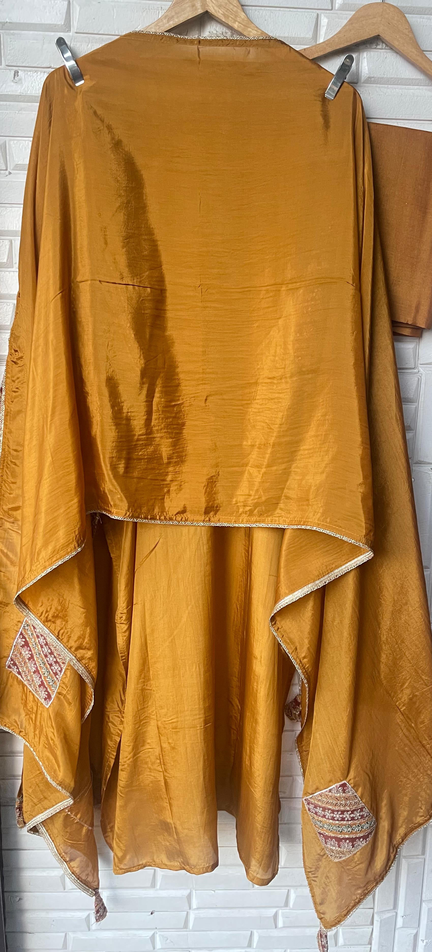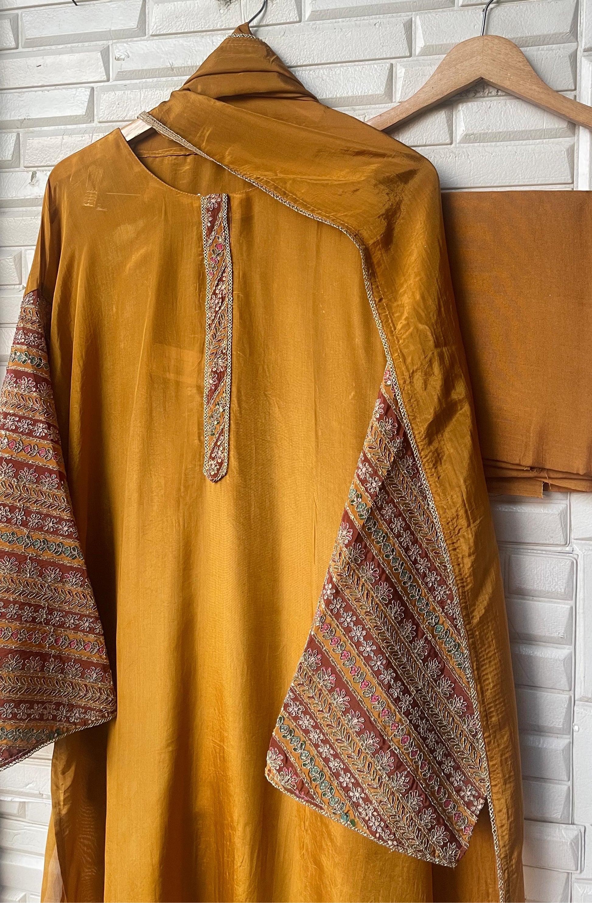 😊 pure silk fabric unstitched shirt with sequence resham zari Dabka embroidery lon daaman on kurta patti and sleeves