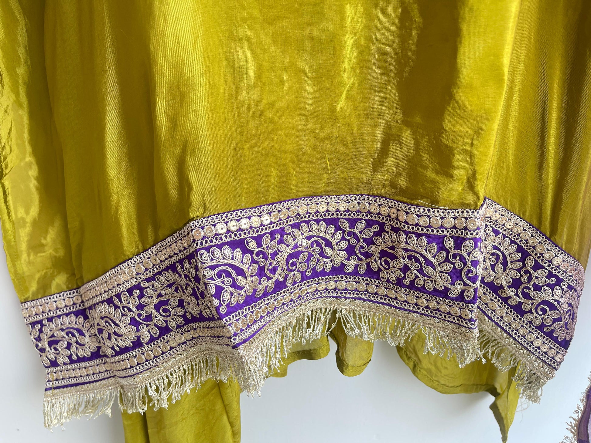 😊 silk fabric unstitched shirt with zari sequence embroidery and tassel ghera lace with sequence highlighting