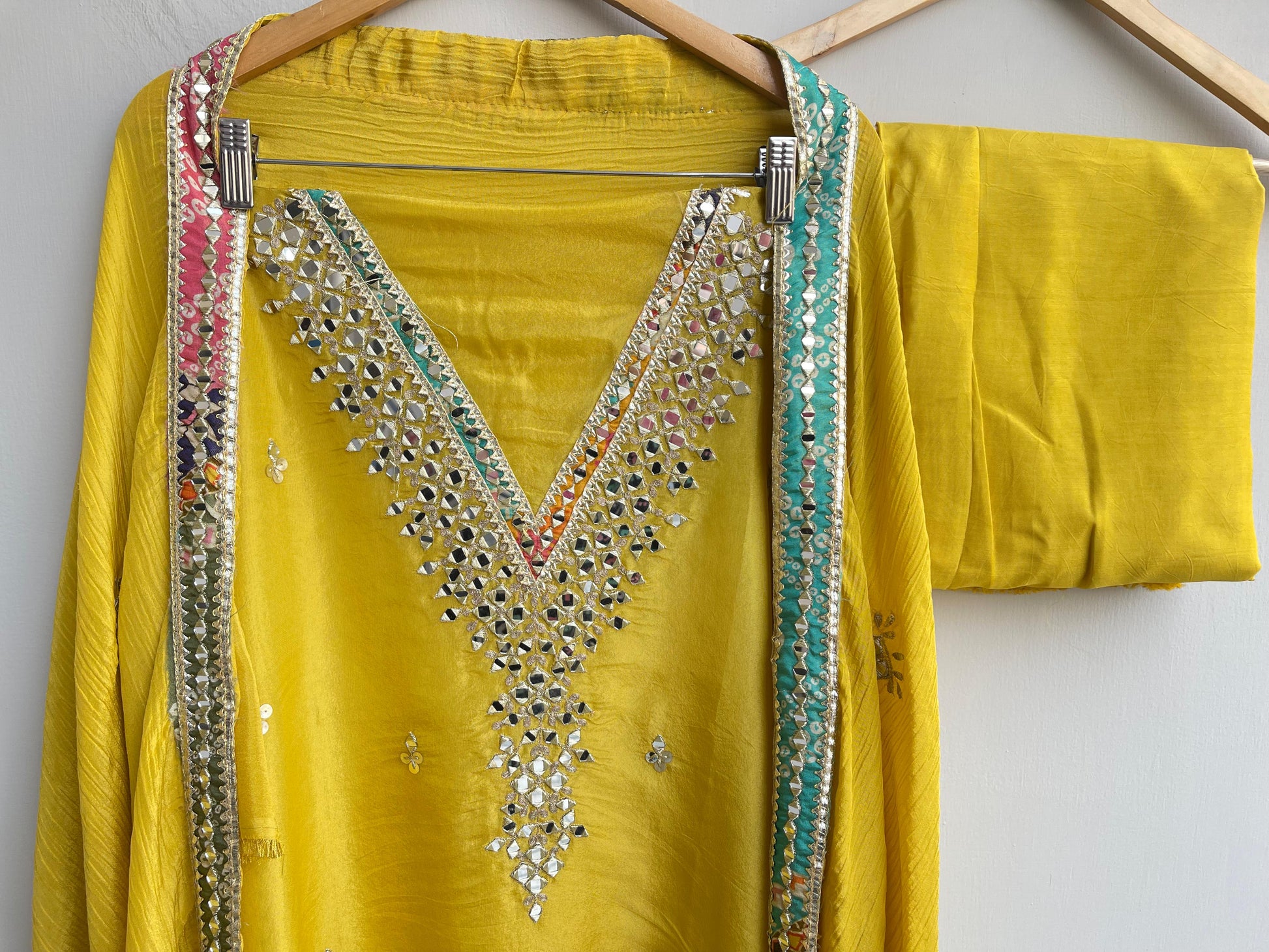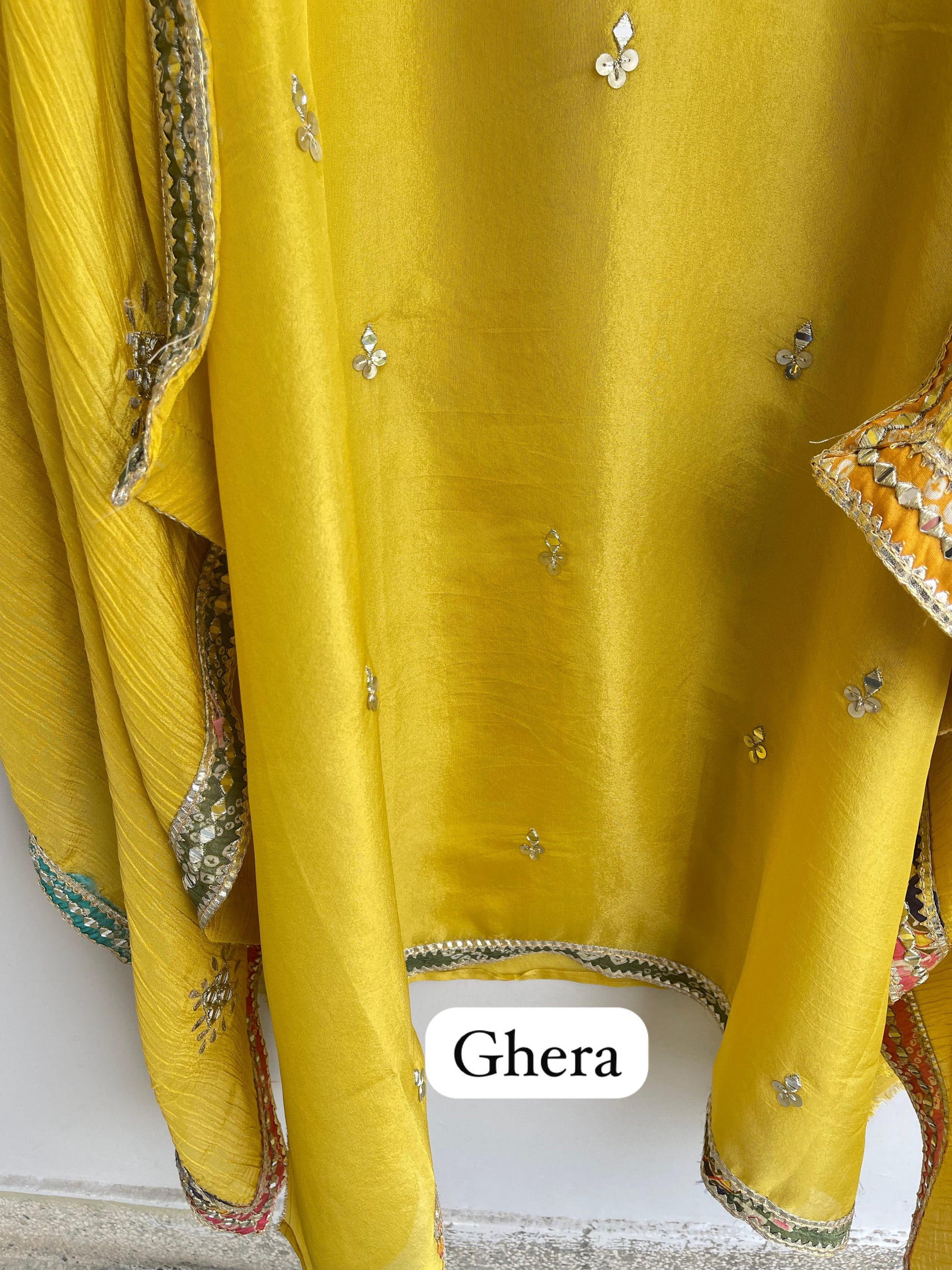 π crushed silk printed fabric dupatta with actual mirror work zari embroidery and printed borders