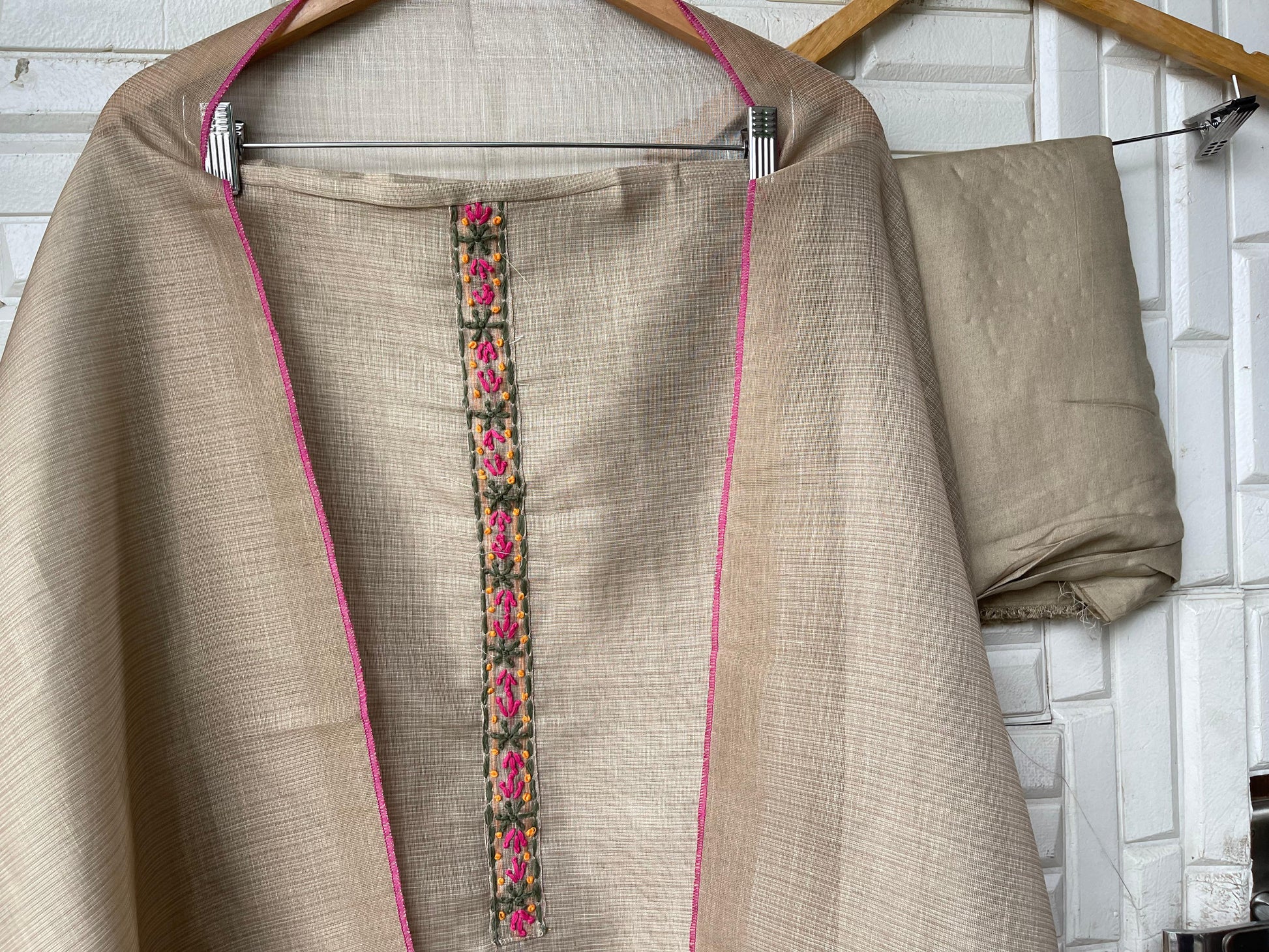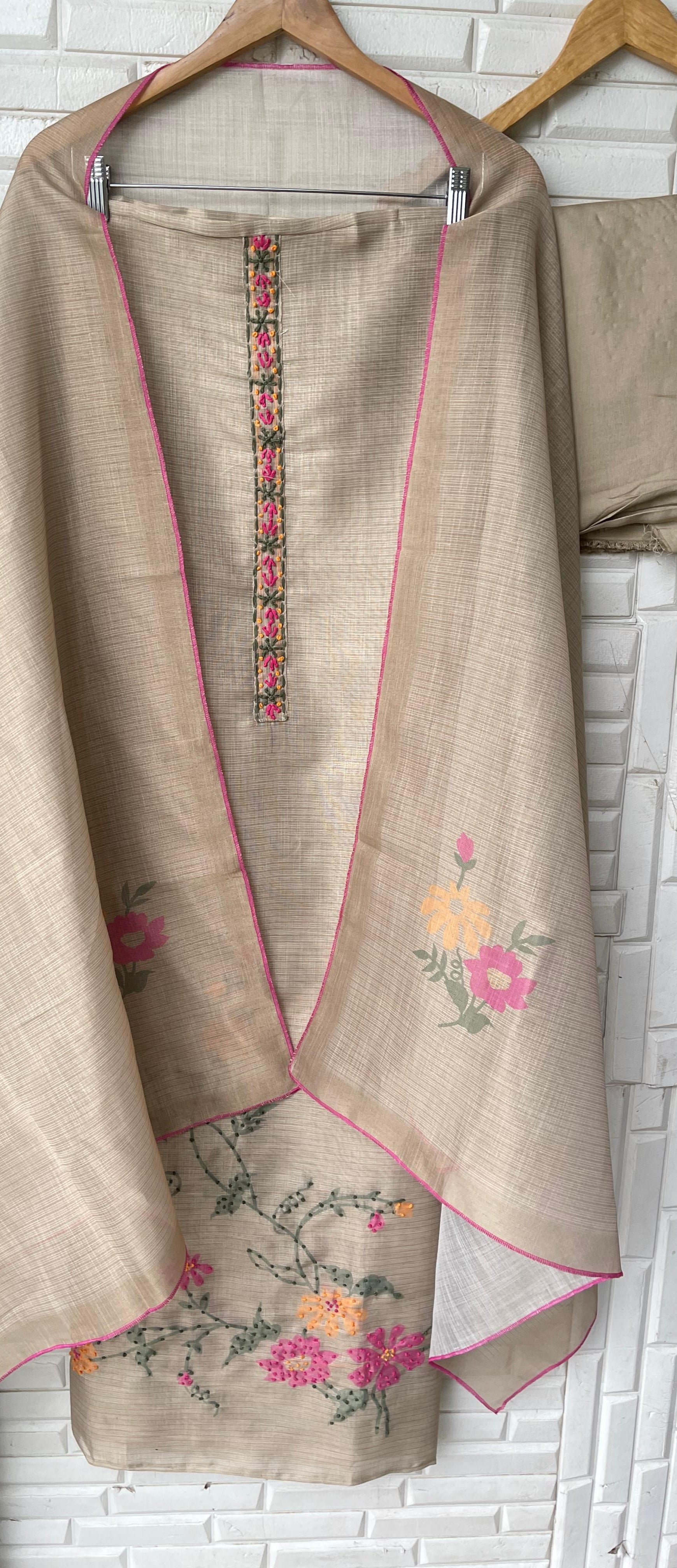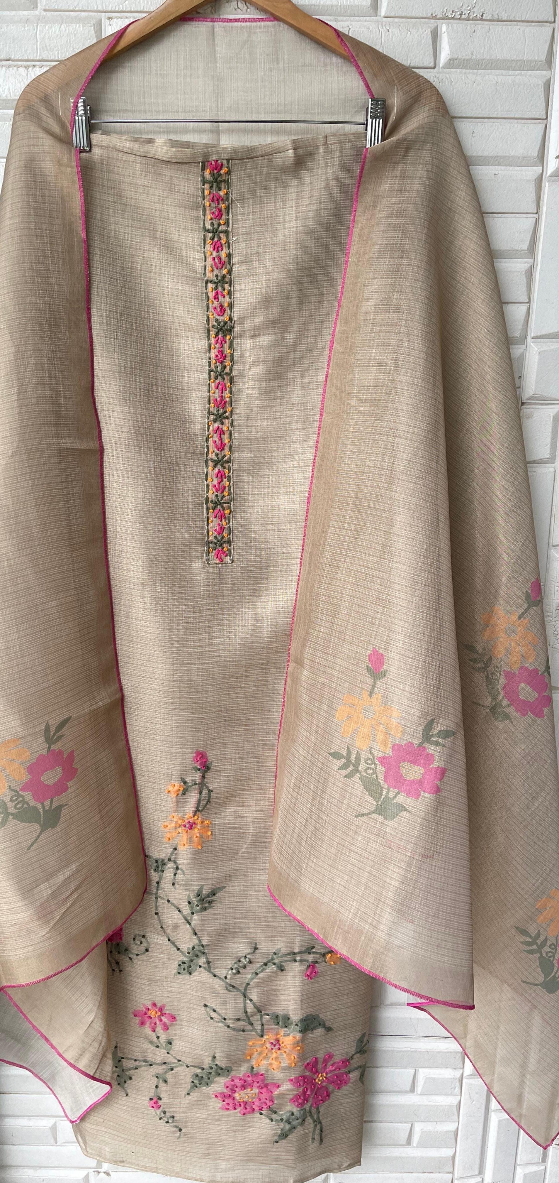 😊Kota Tassar silk unstitched shirt with Resham knots embroidery