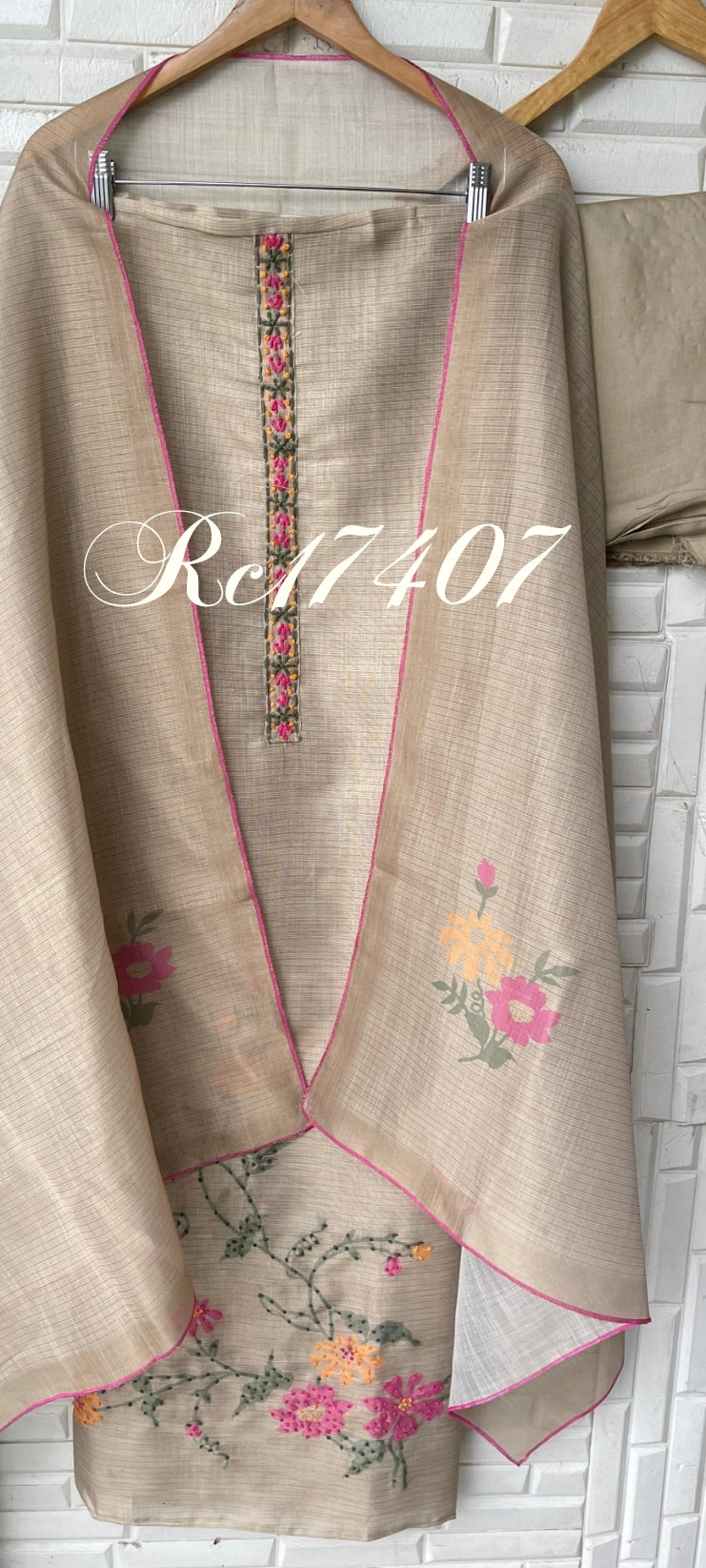 Tassar silk unstitched ladies suit Rc17407