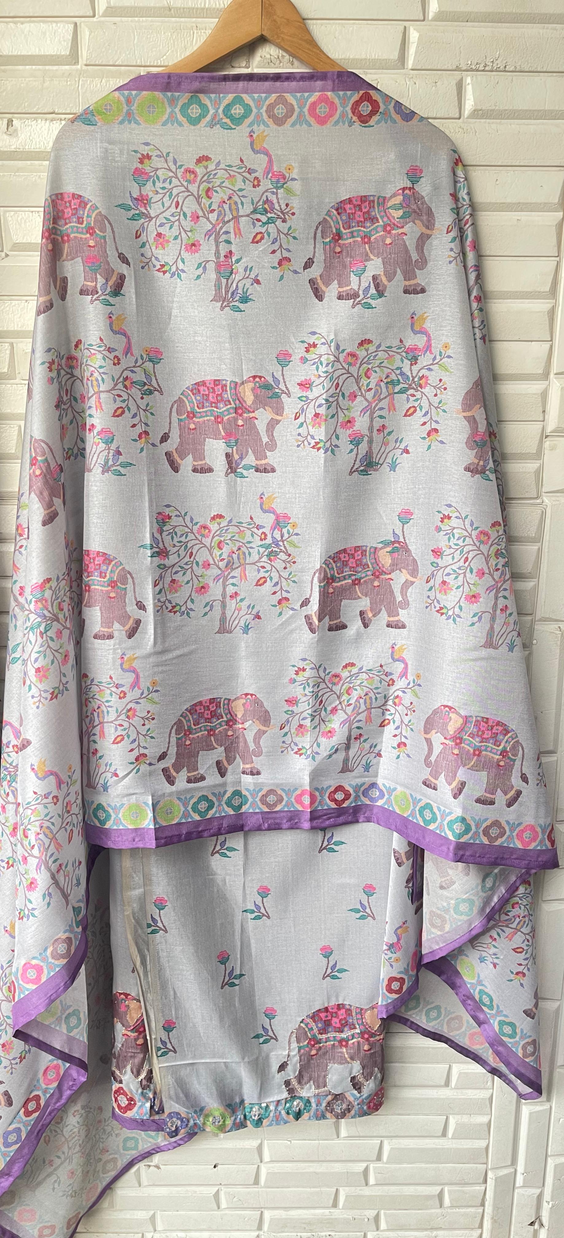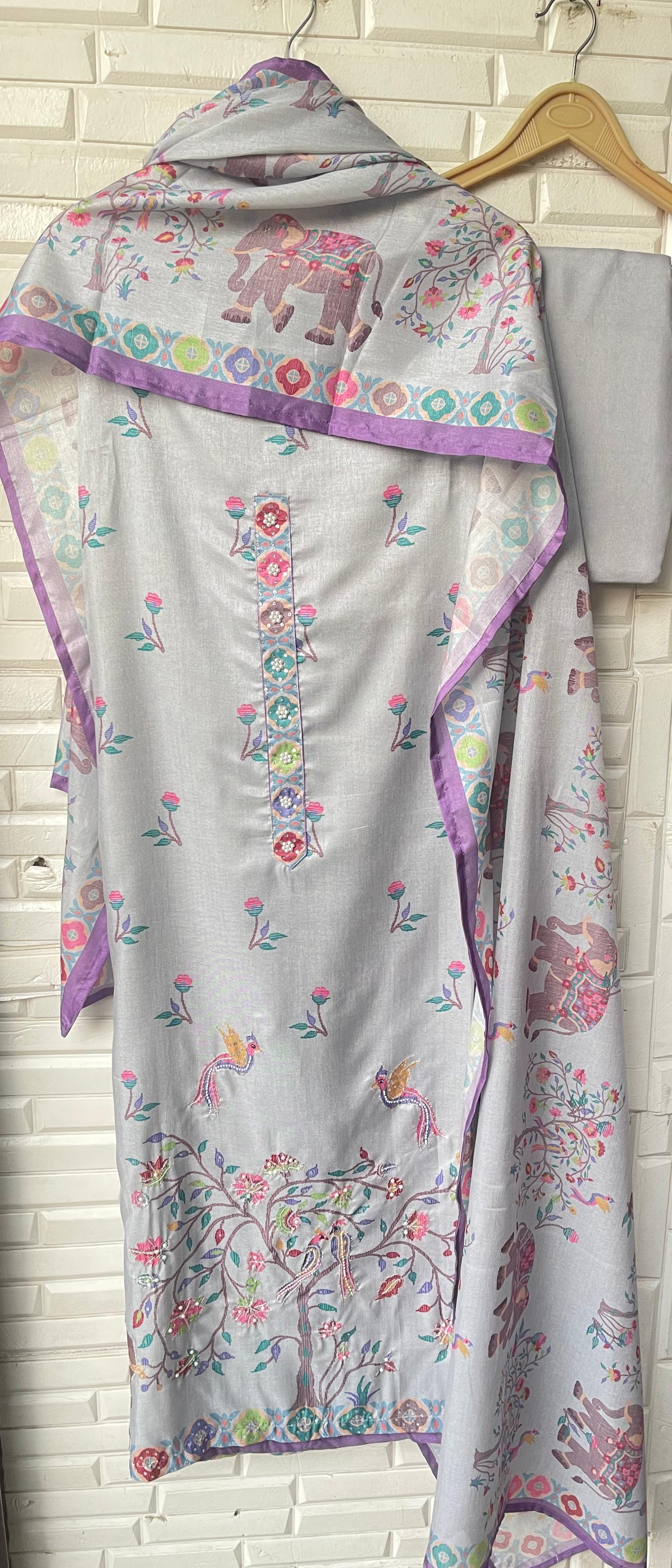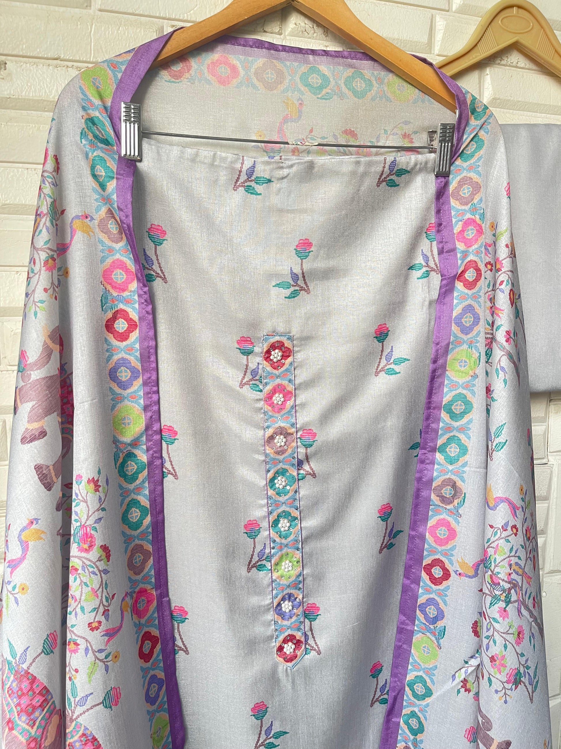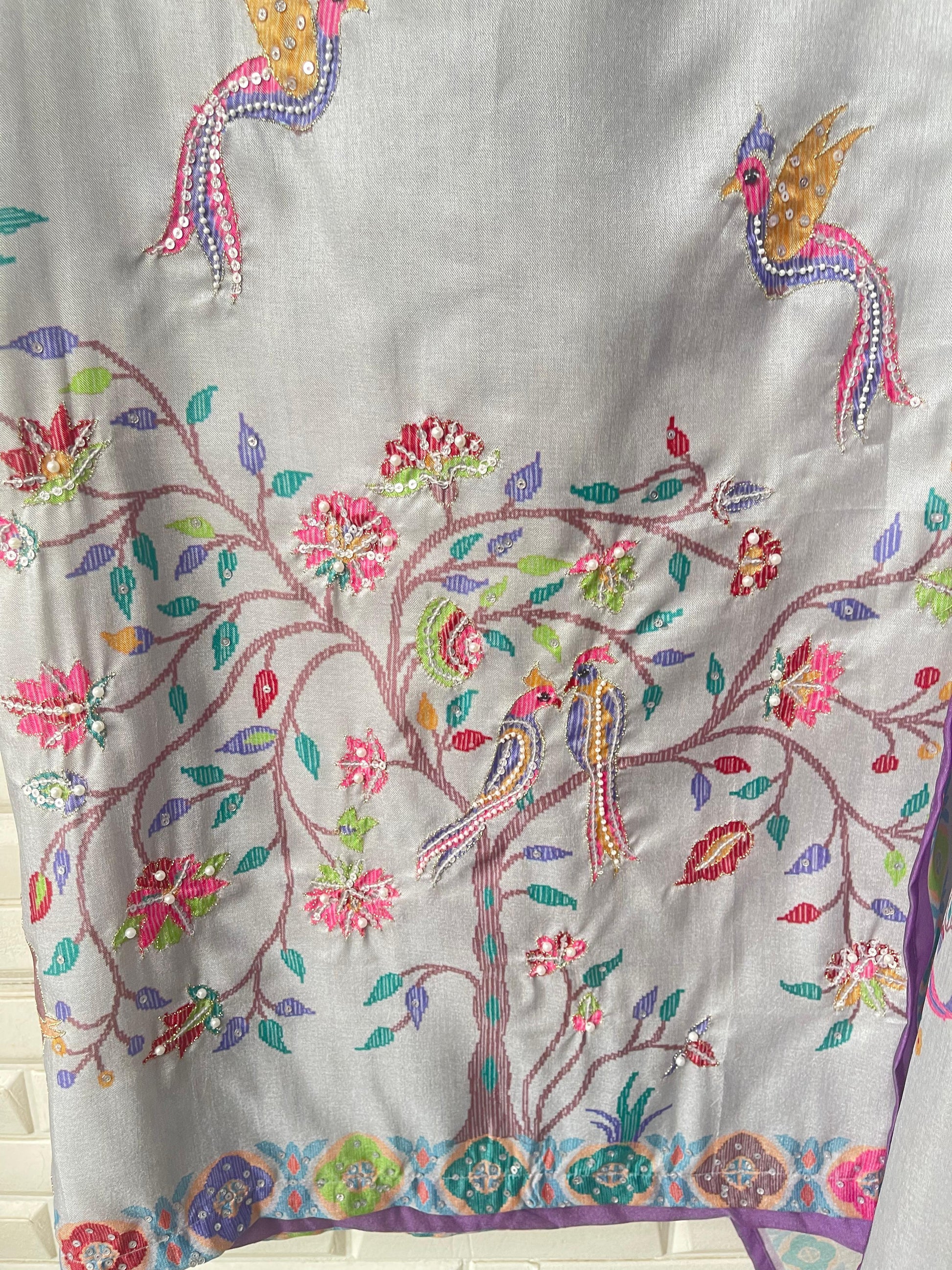 π pure tassar silk printed fabric unstitched shirt with sequence pearl zari embroidery
