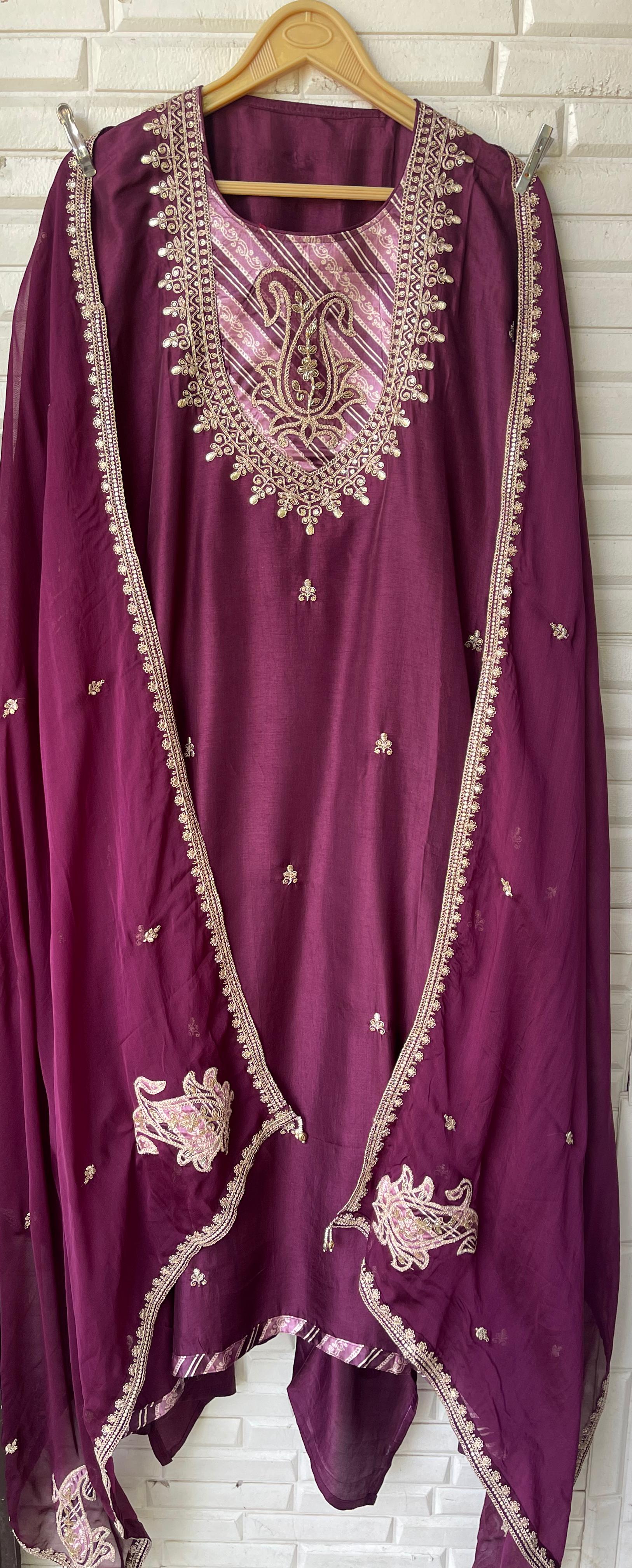 😊 pure tassar silk fabric unstitched shirt with zari resham sequence gotta cutdana embroidery and patchwork