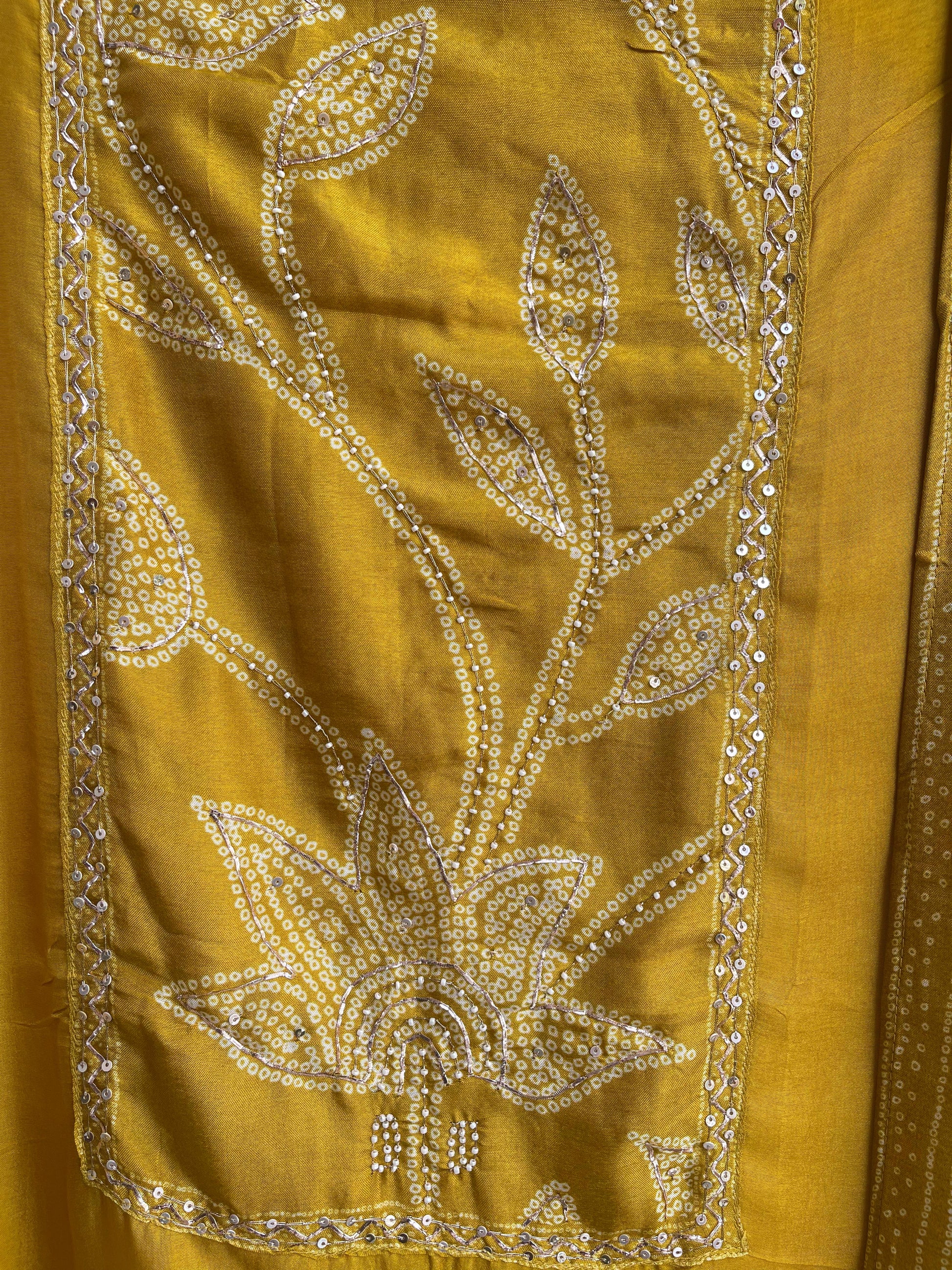π tassar silk printed fabric unstitched shirt with gotta lace sequence zari pearl embroidery and ghera lace