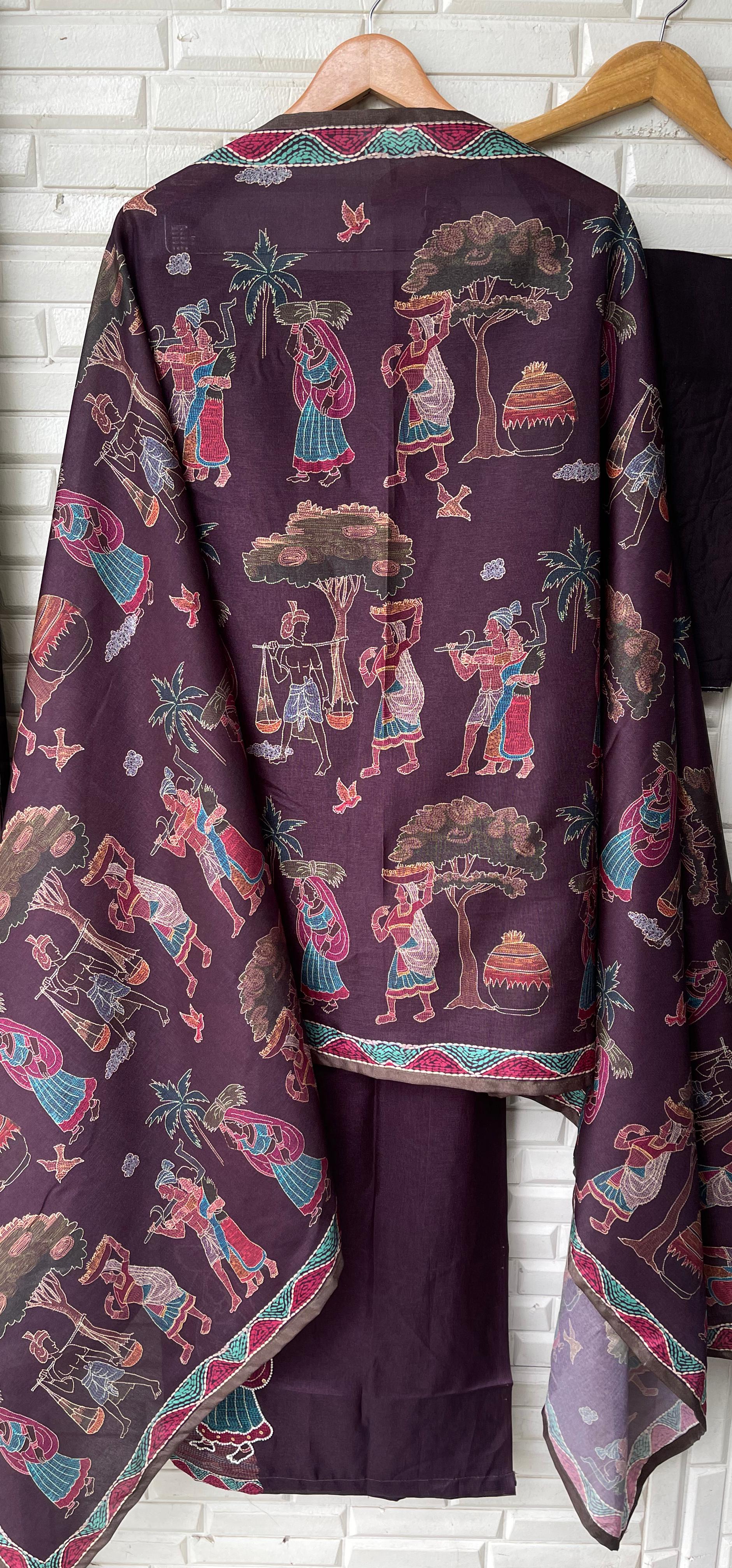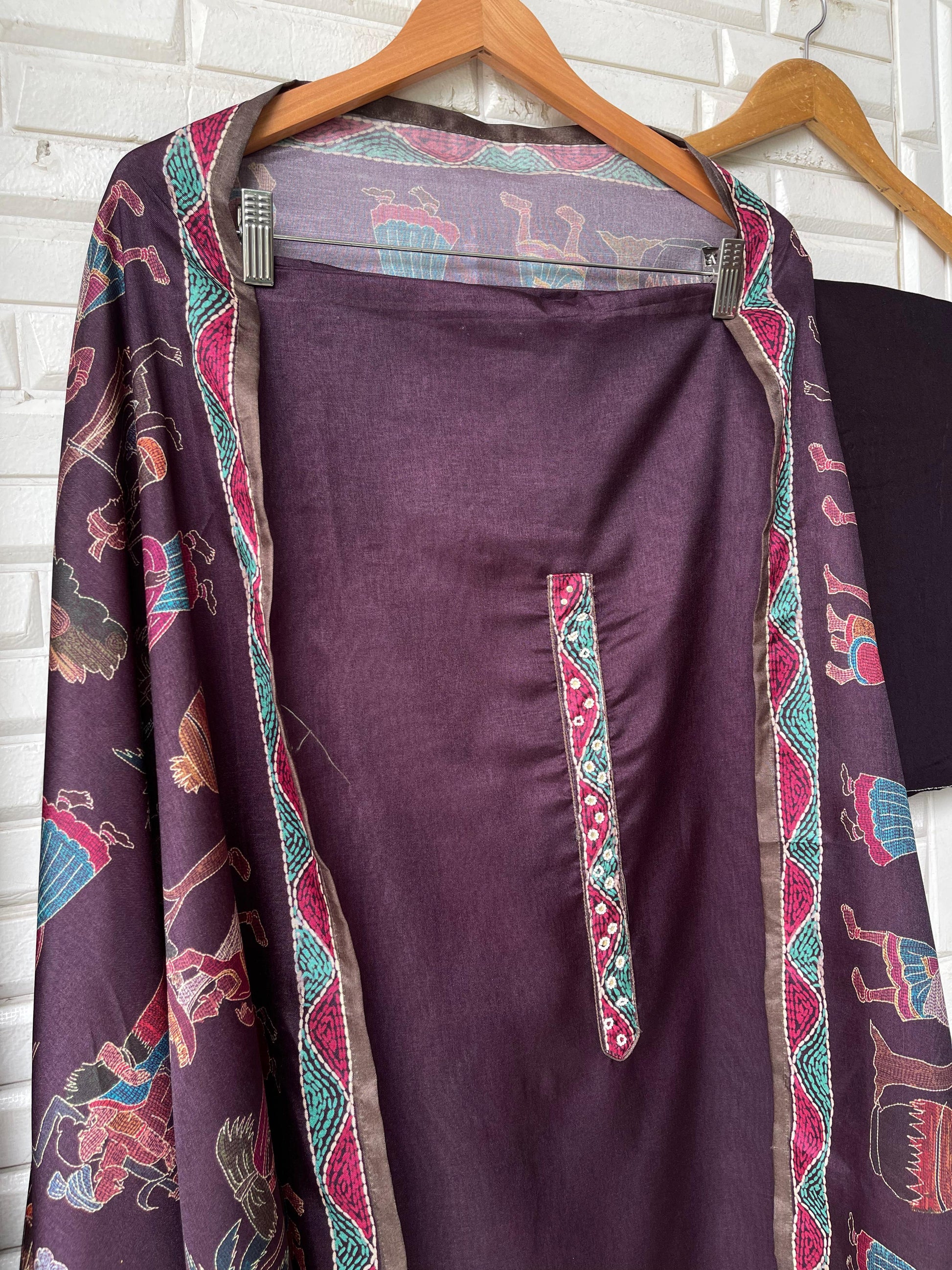 π tasser silk printed fabric unstitched shirt with zari mirror sequence pearl embroidery highlighting