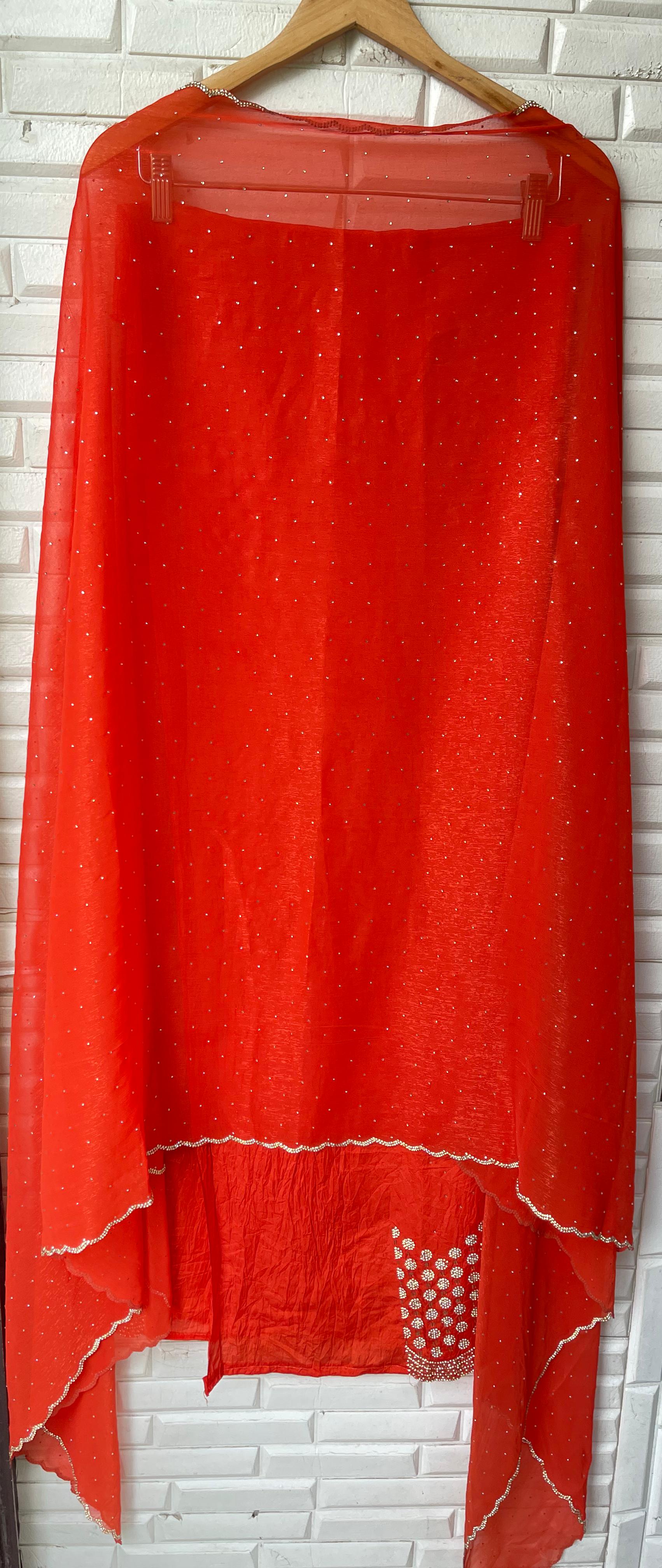 😊 viscose shimmer chiffon fabric dupatta with swarowski embroidery