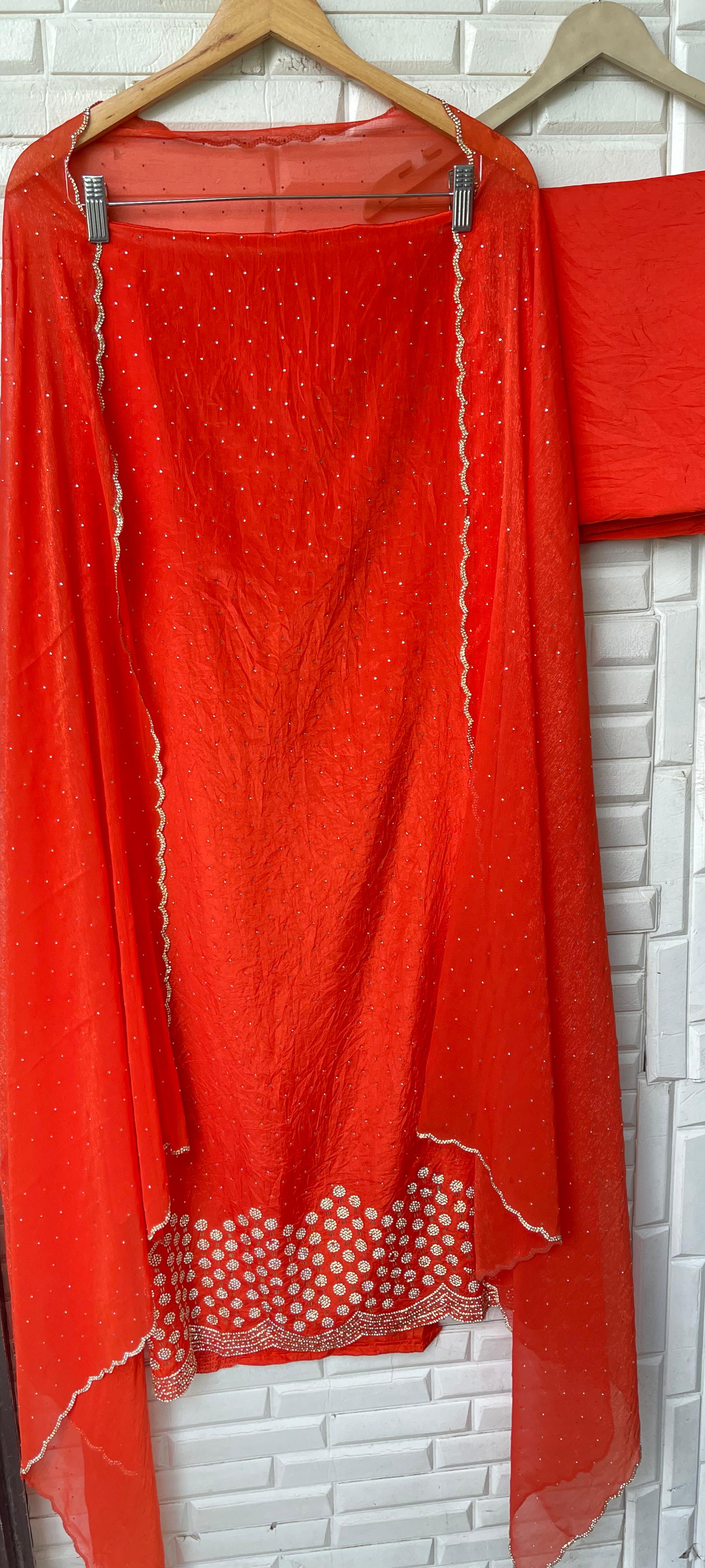 😊 crushed tissue fabric unstitched shirt with swarowski embroidery