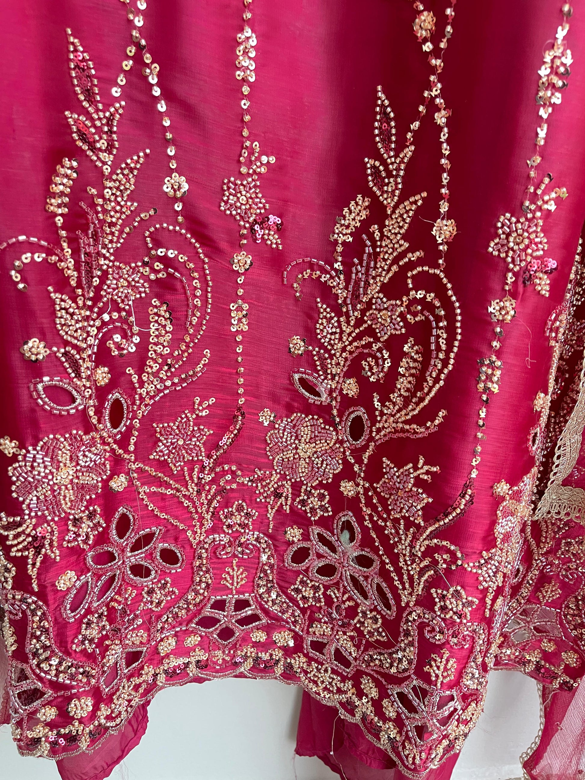 π tissue satin fabric unstitched shirt with kutdanna sequence embroidery with zari Applique work and cutwork