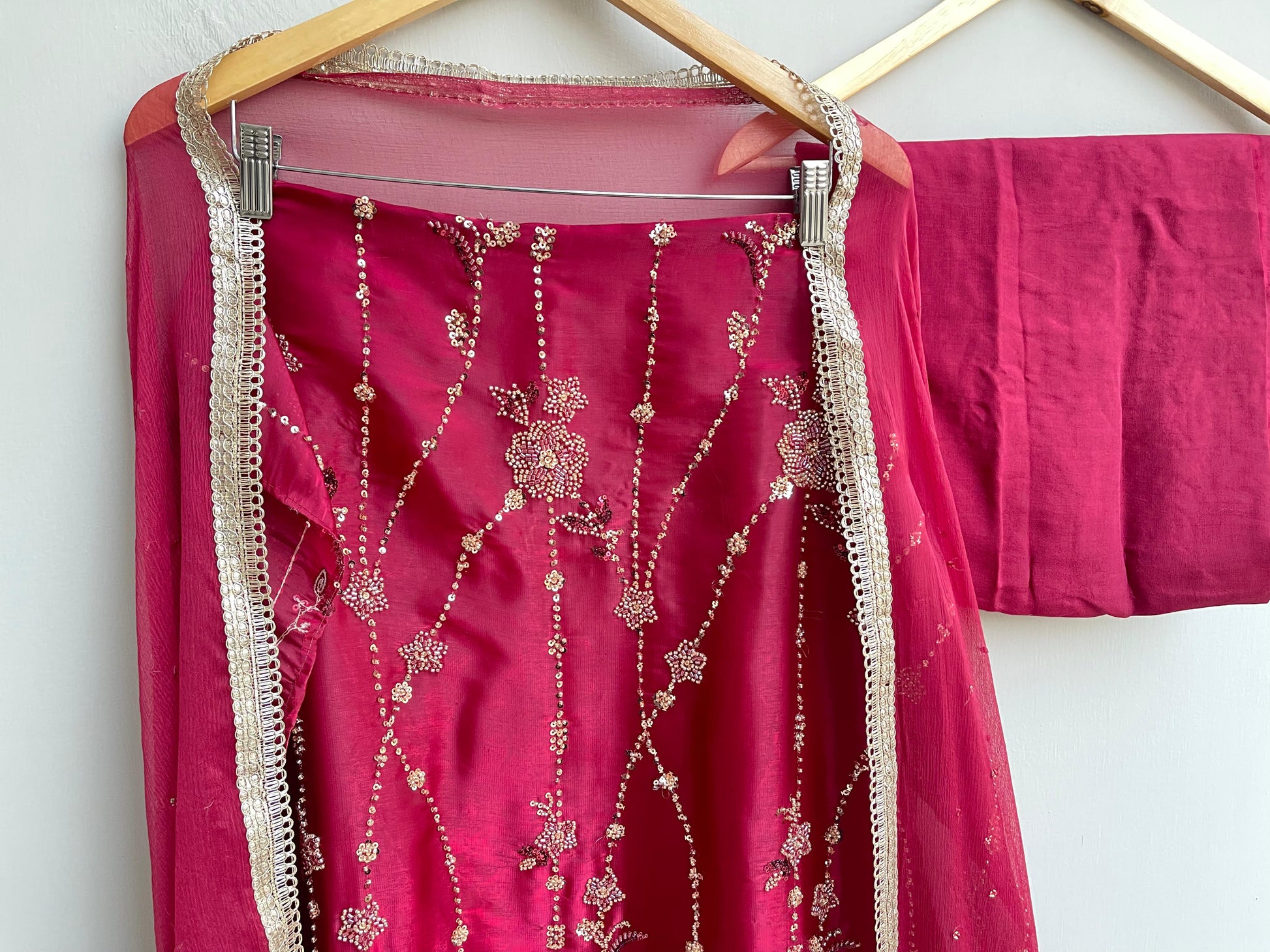π chiffon fabric dupatta with sequence highlighting and kingri border laceΒ