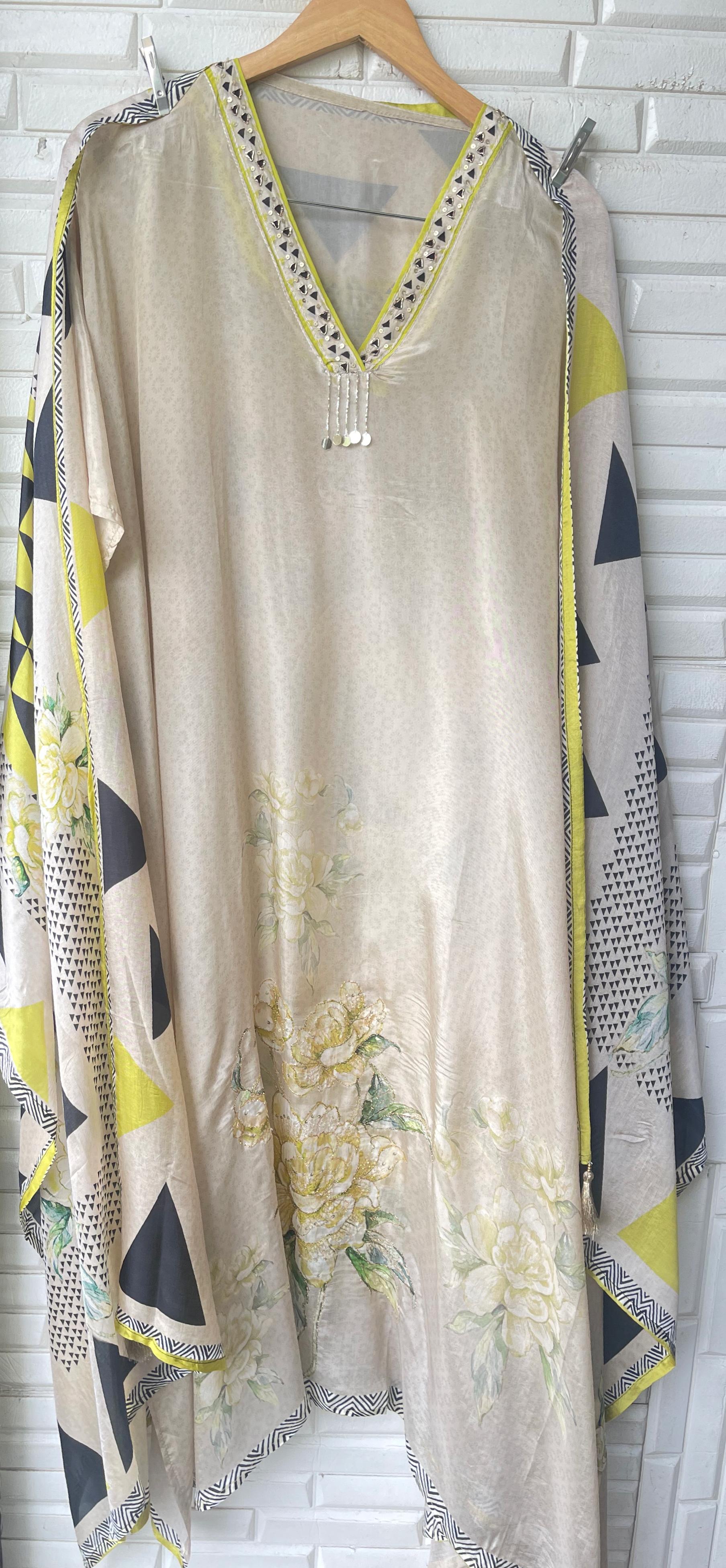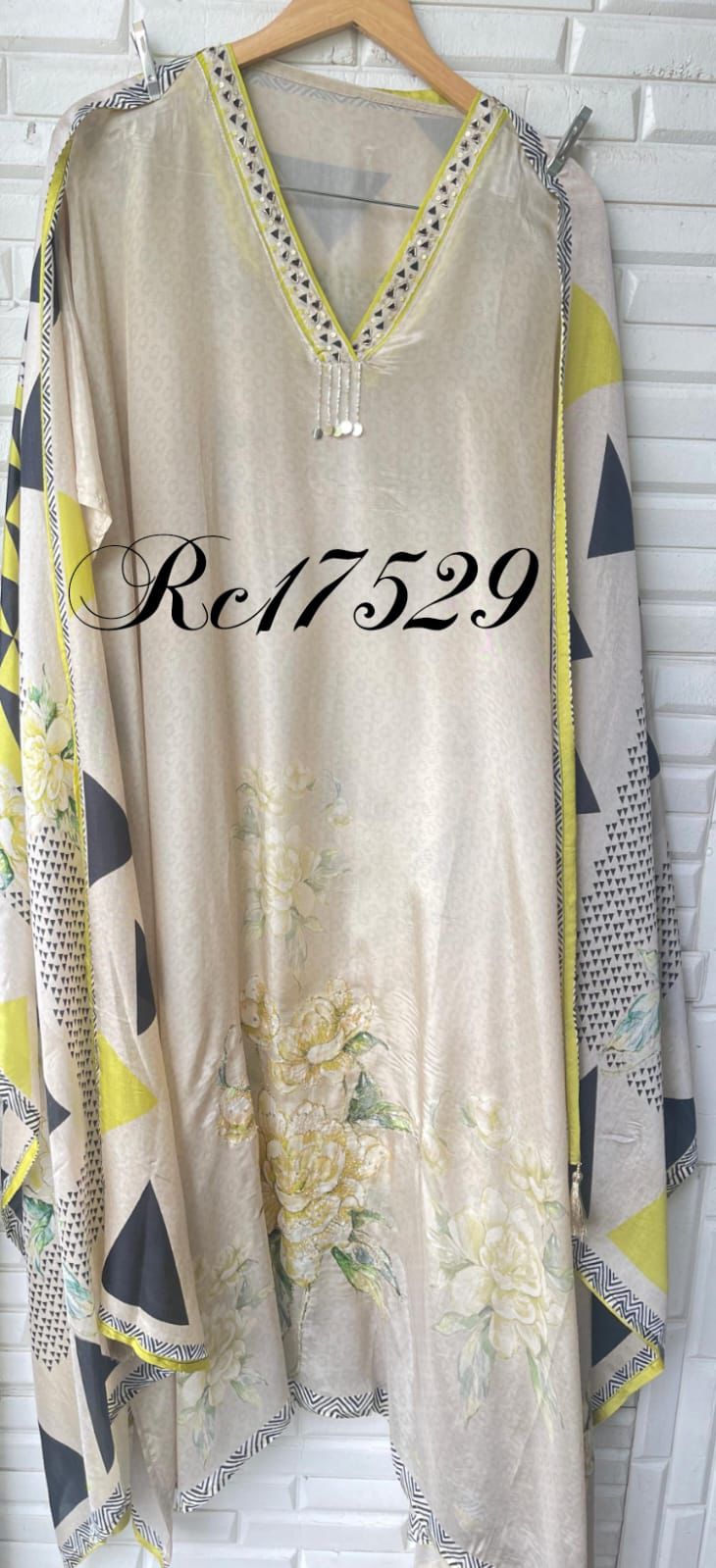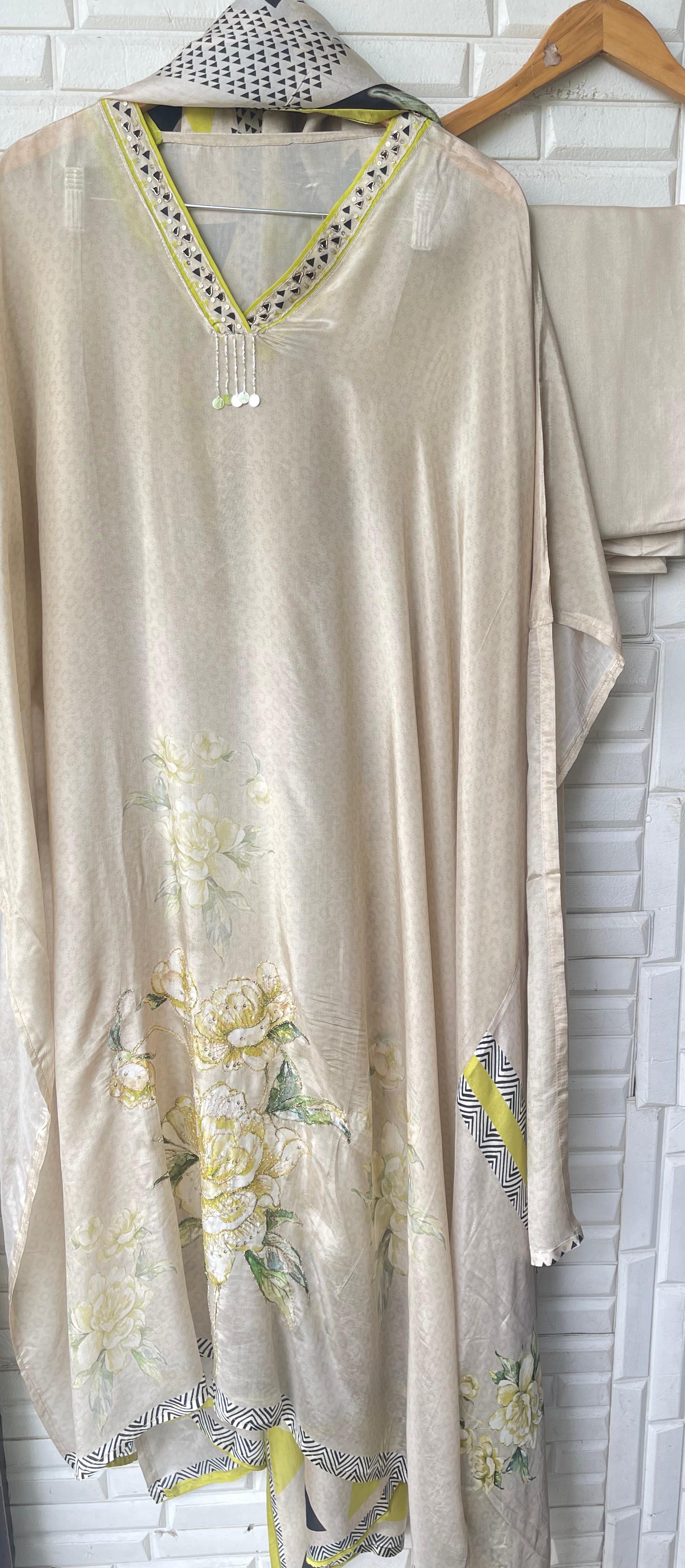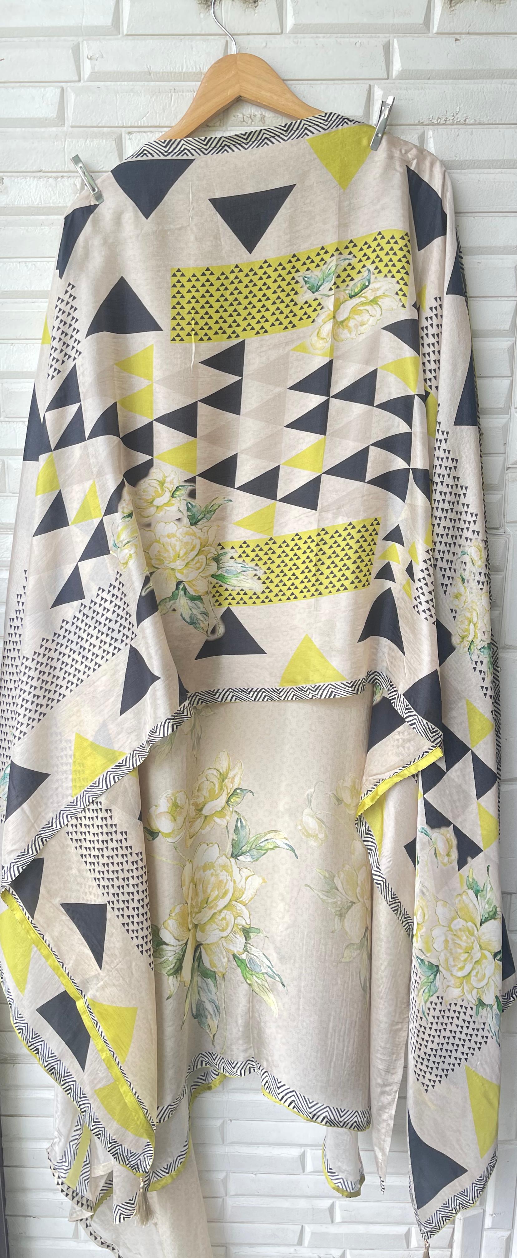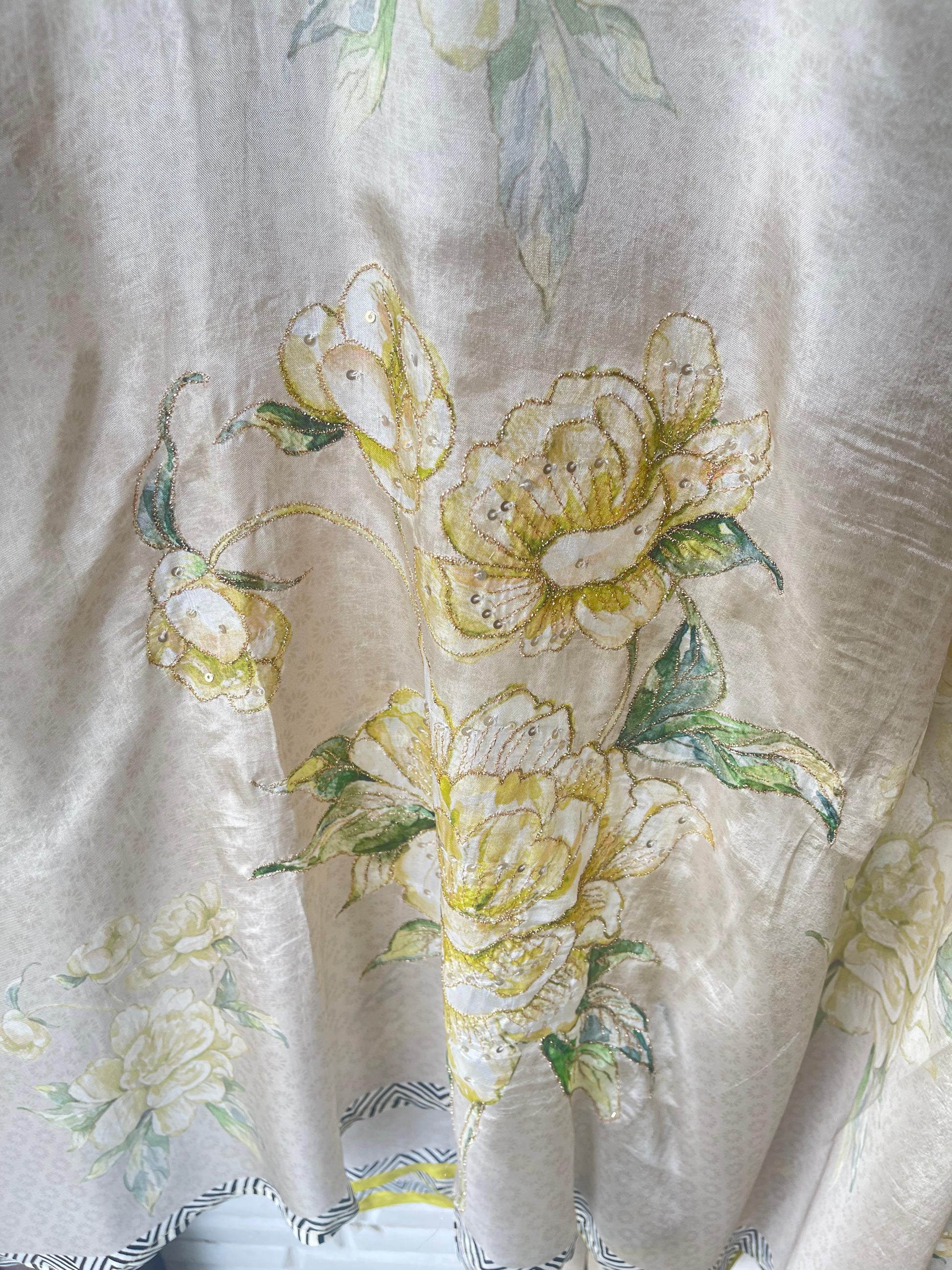 😊 Russian silk printed fabric unstitched shirt with zari sequence embroidery