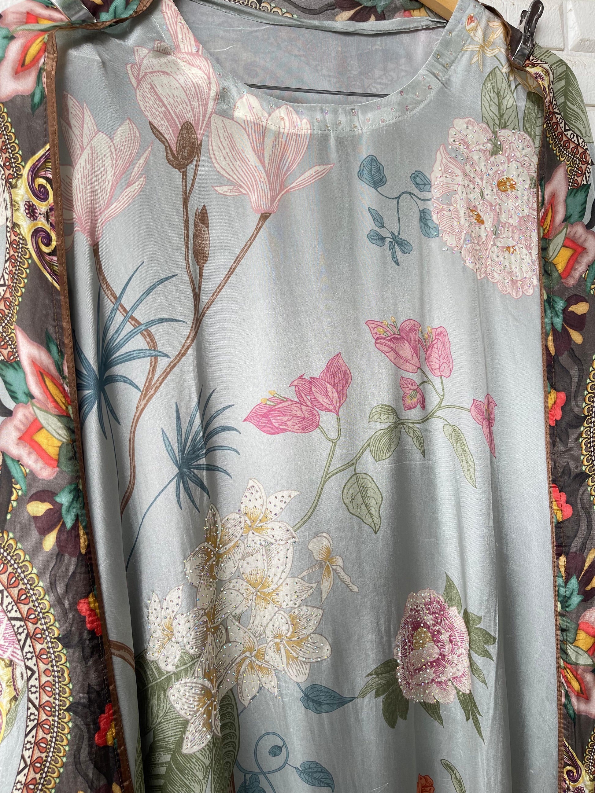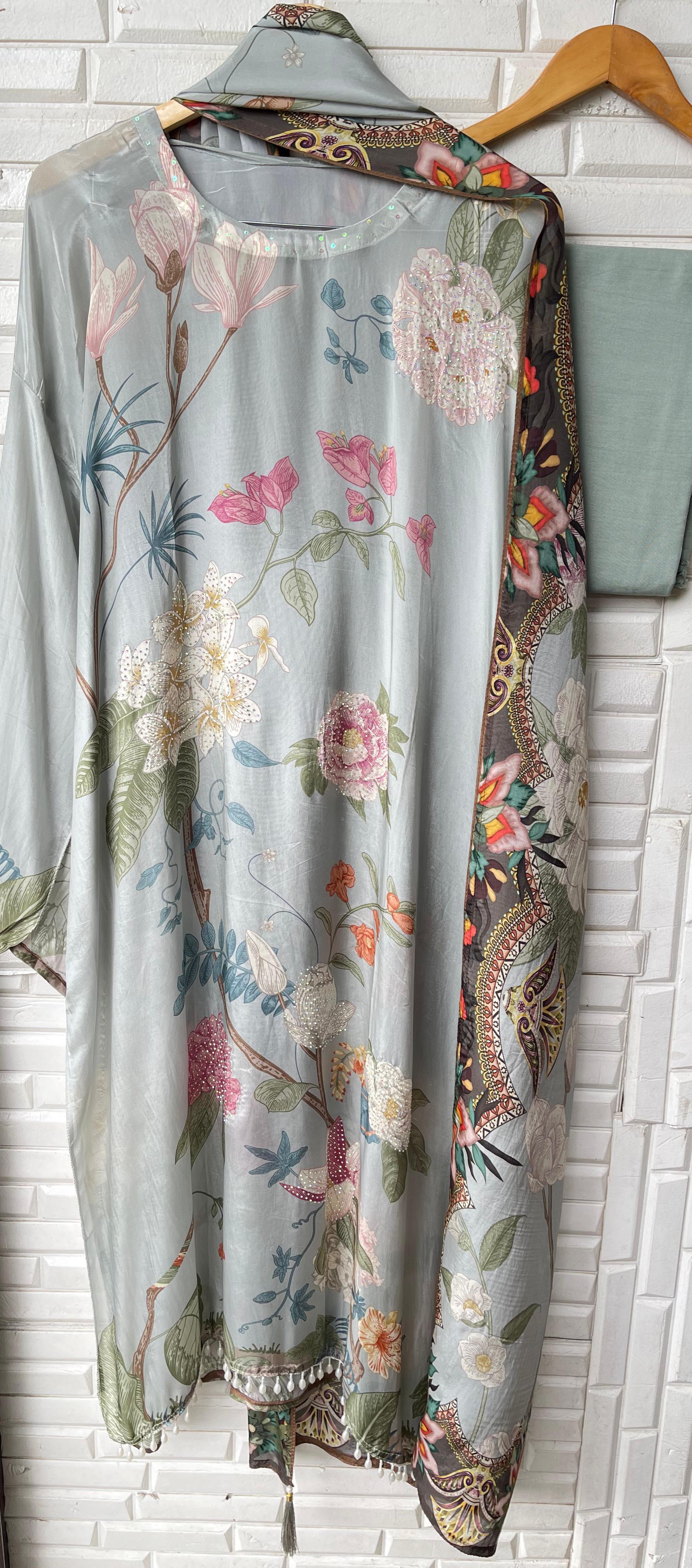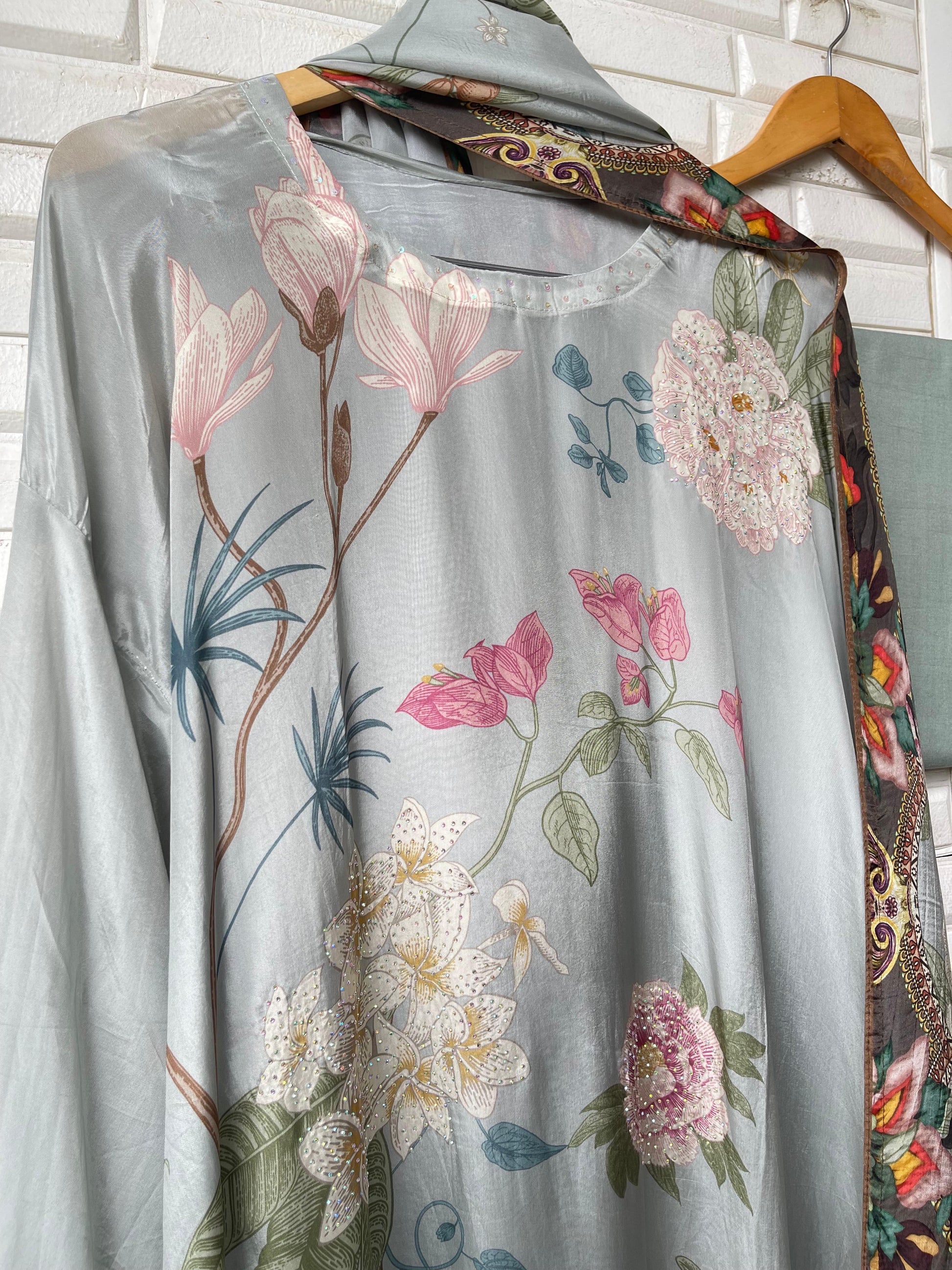 π glass organza printed fabric unstitched shirt with Swarowski sequence highlighting
