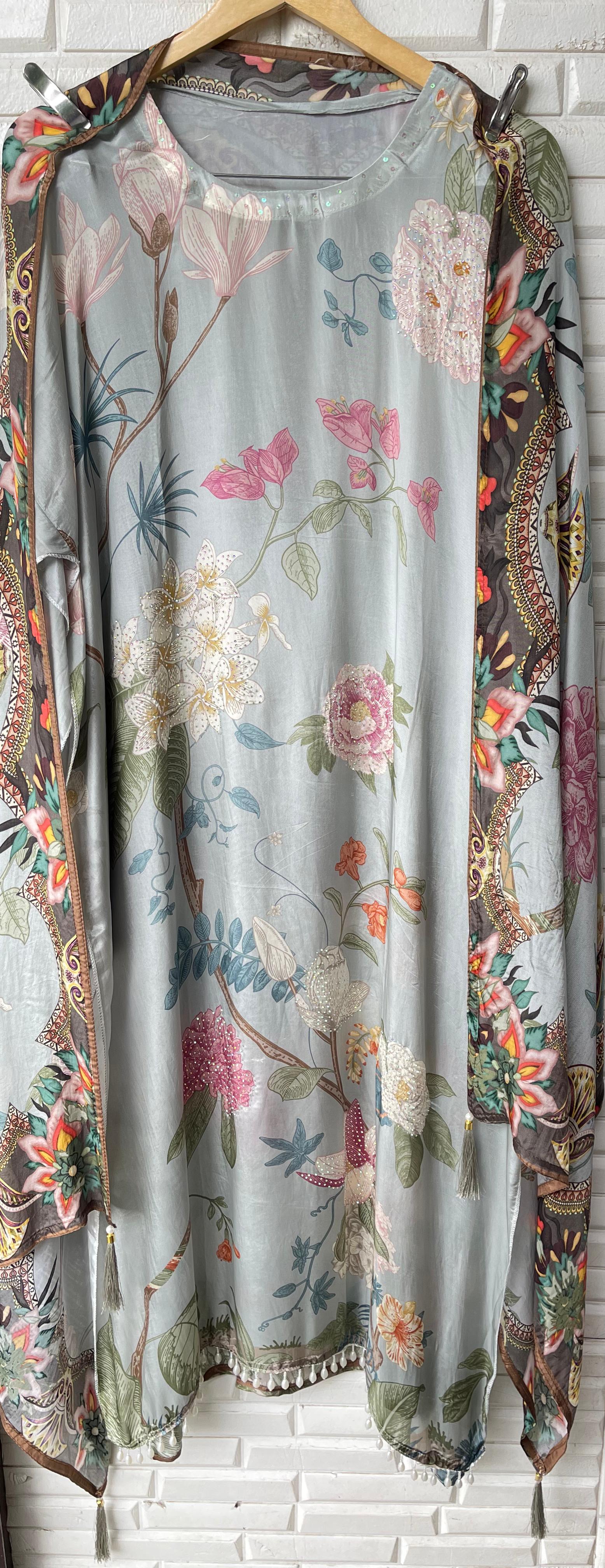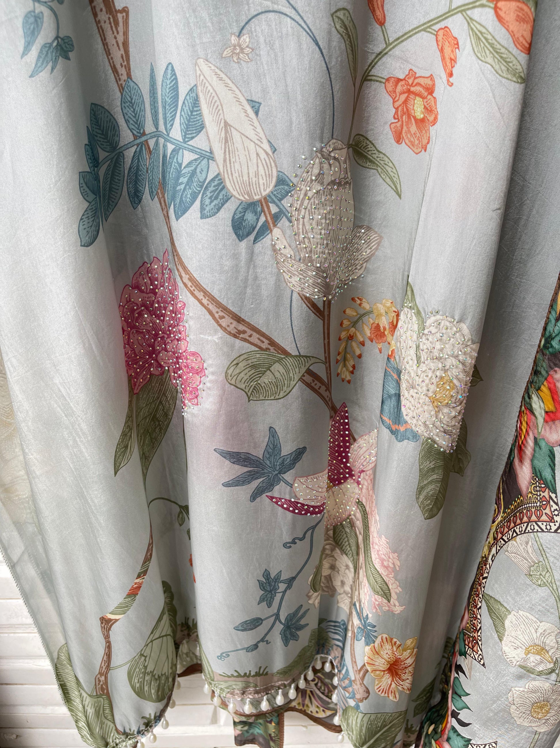 π glass organza printed fabric dupatta and pearl hanging border lace