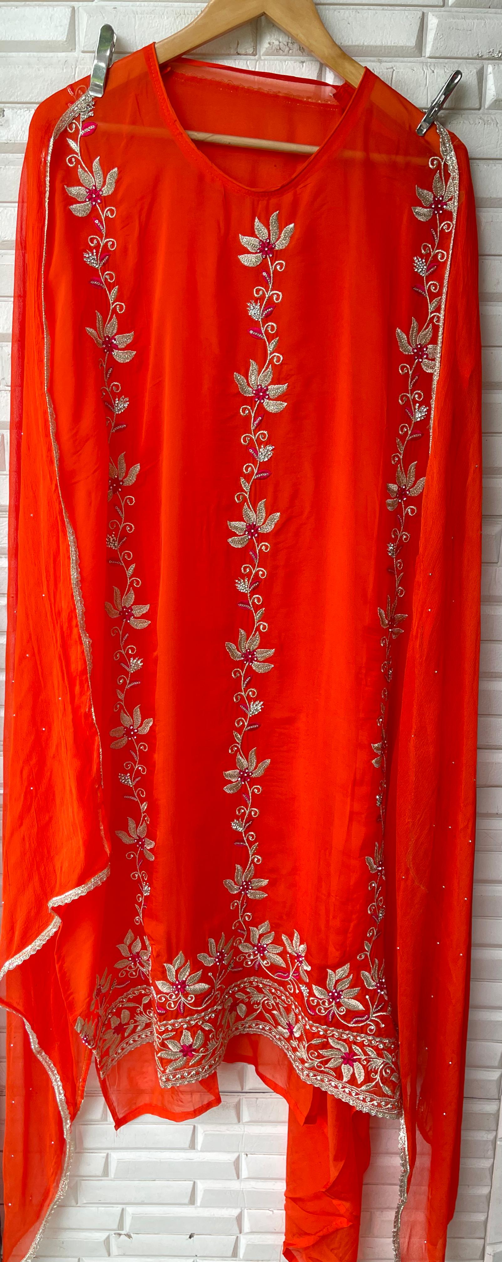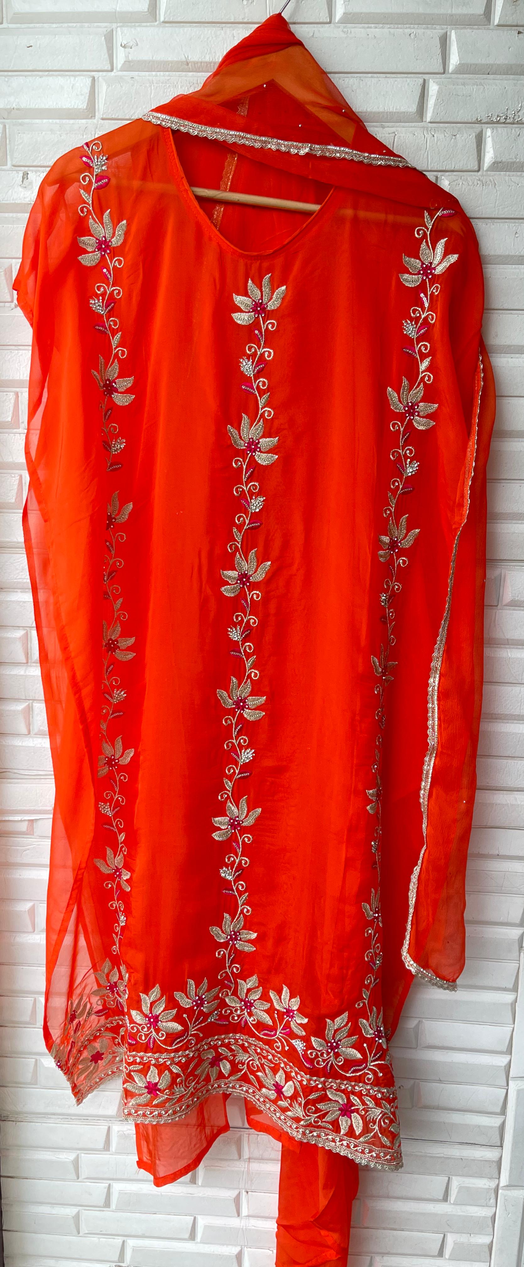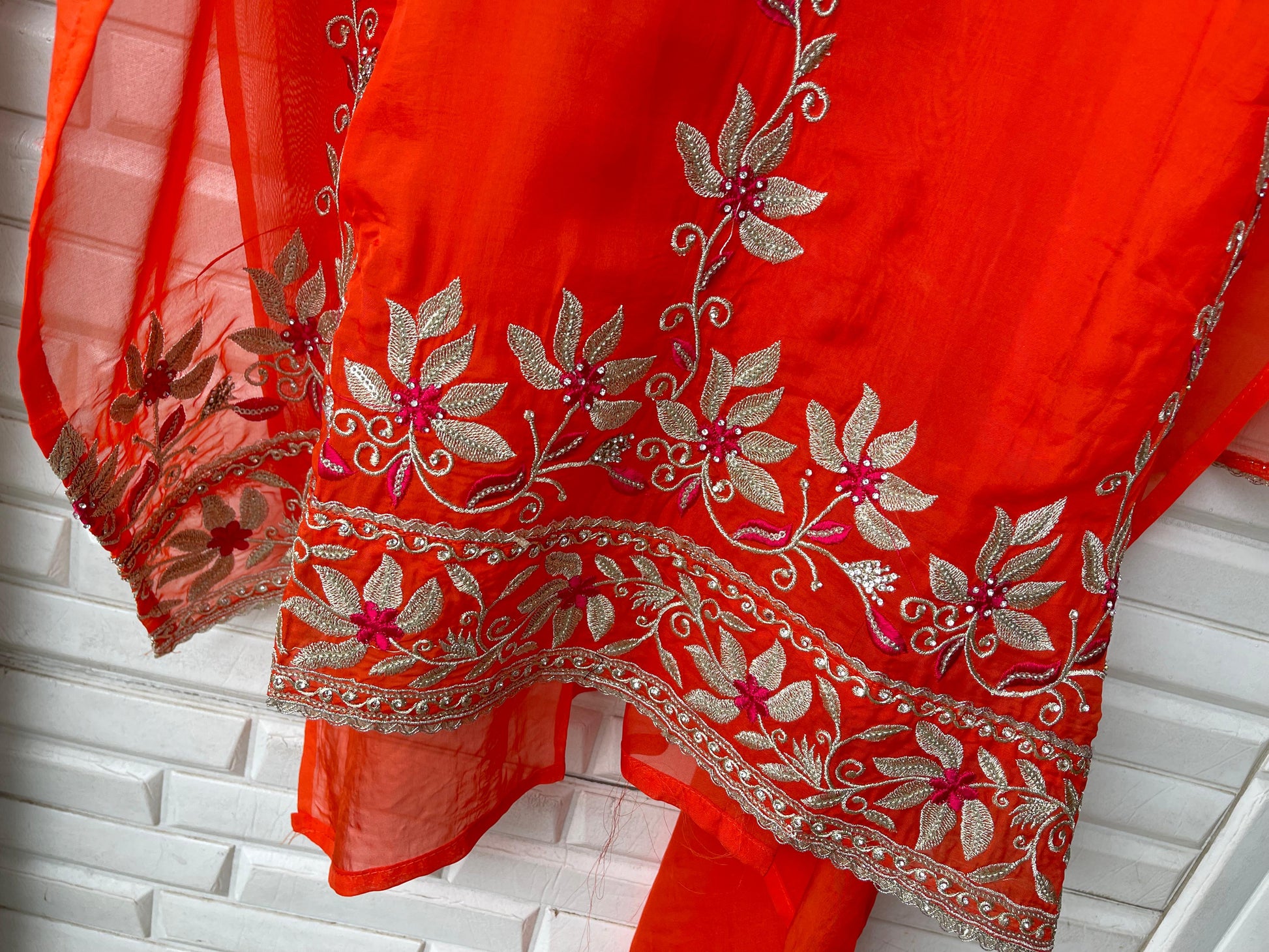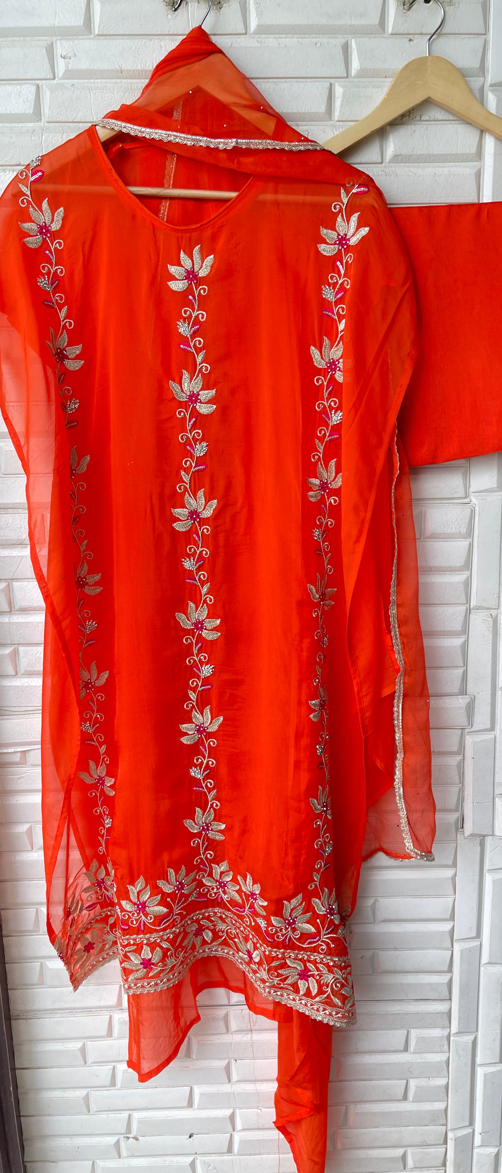π organza fabric semi stitched shirt with resham zari swarowski embroidery