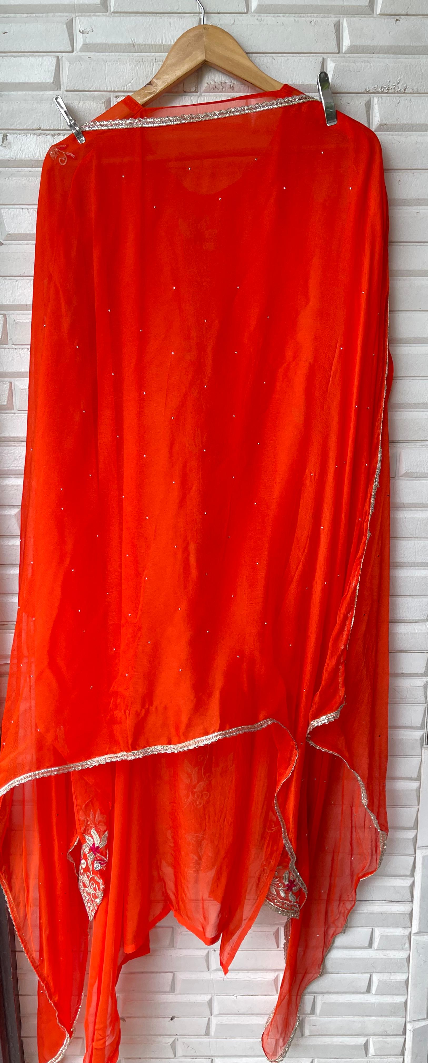 π pure chiffon fabric dupatta with border lace and swarowski highlighting