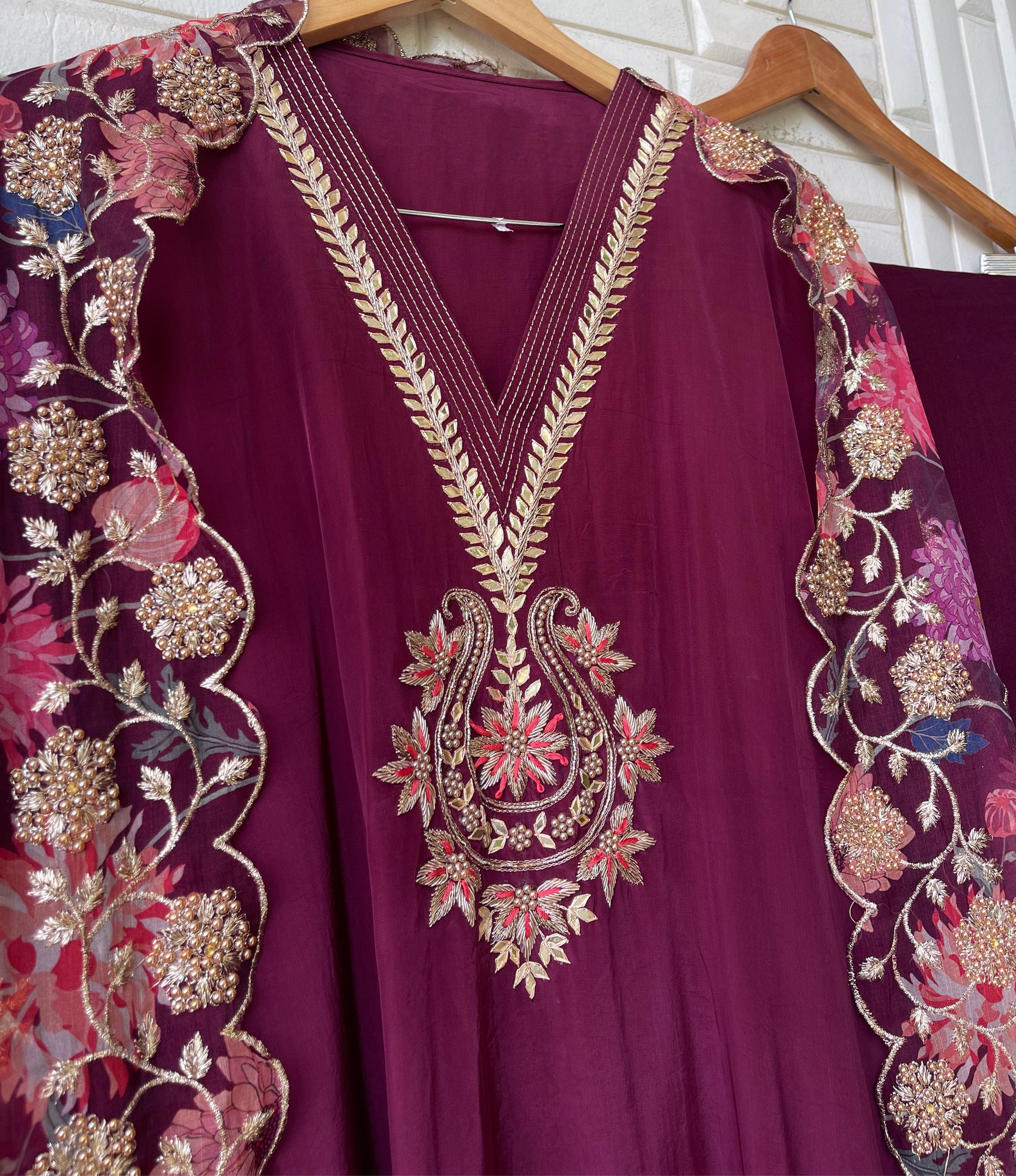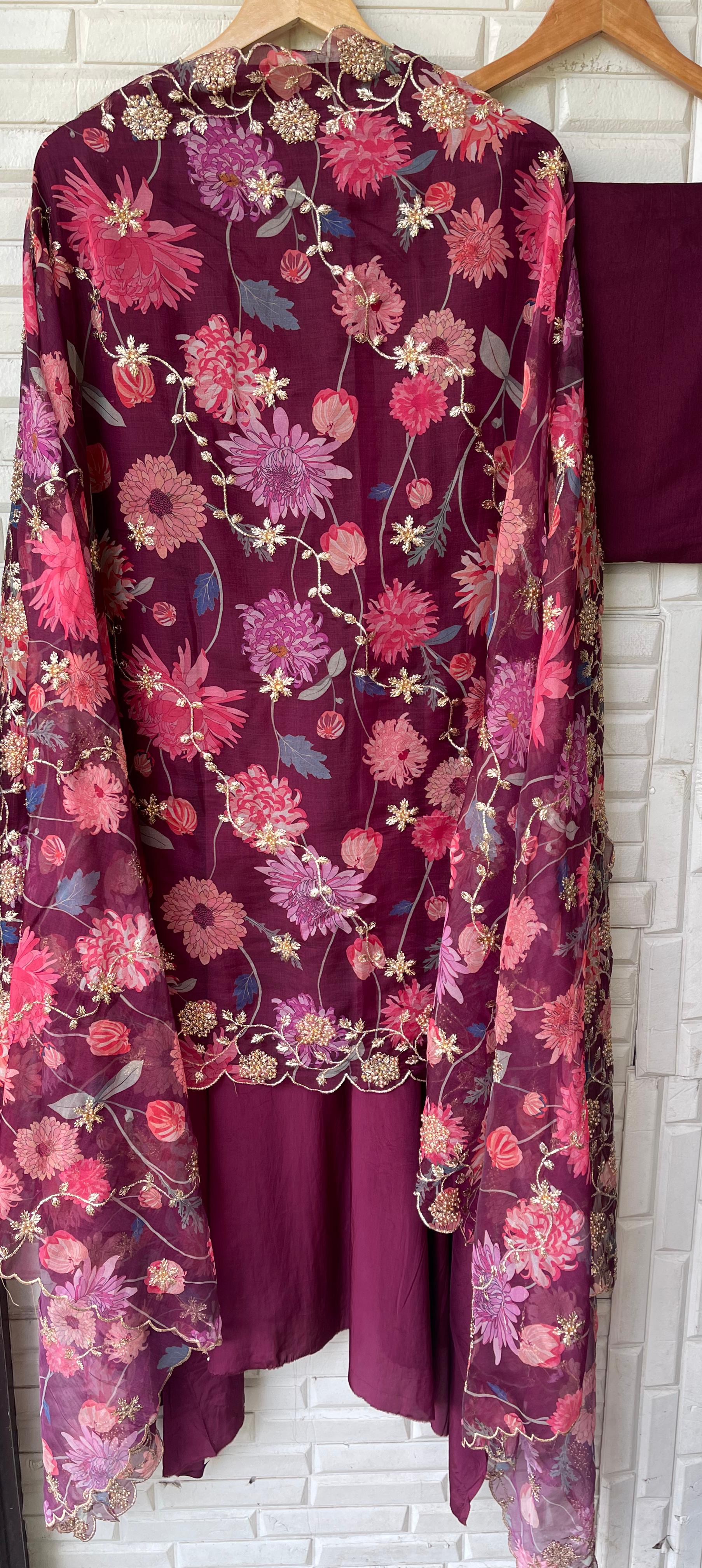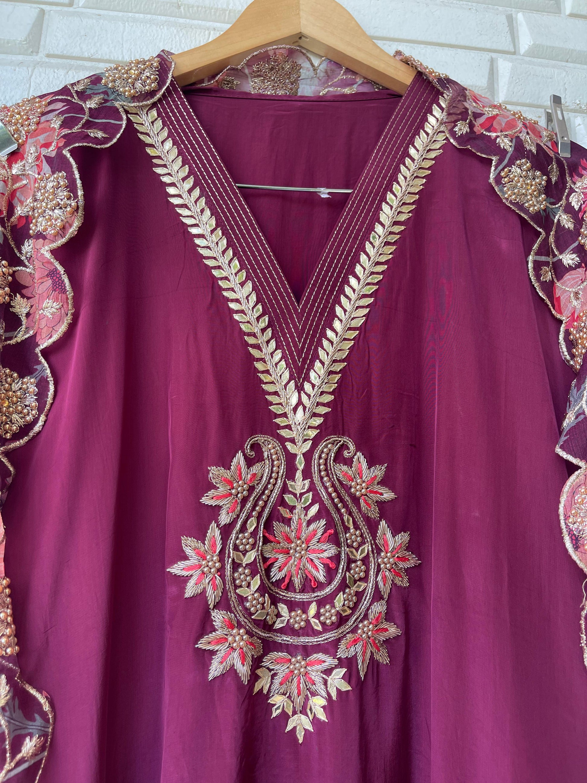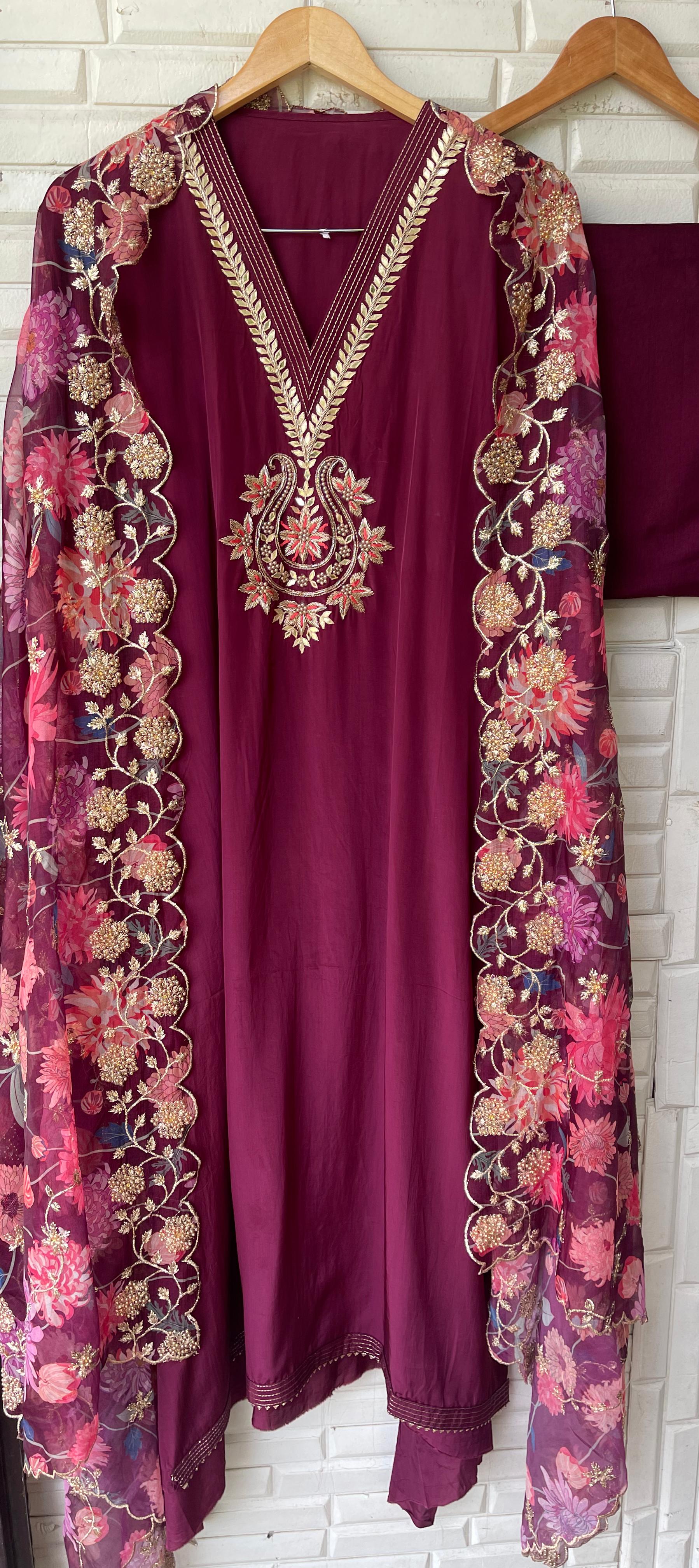 π pure crepe silk fabric unstitched shirt with actual mirror work dabka pearl kutdanna zari resham hand embroidery