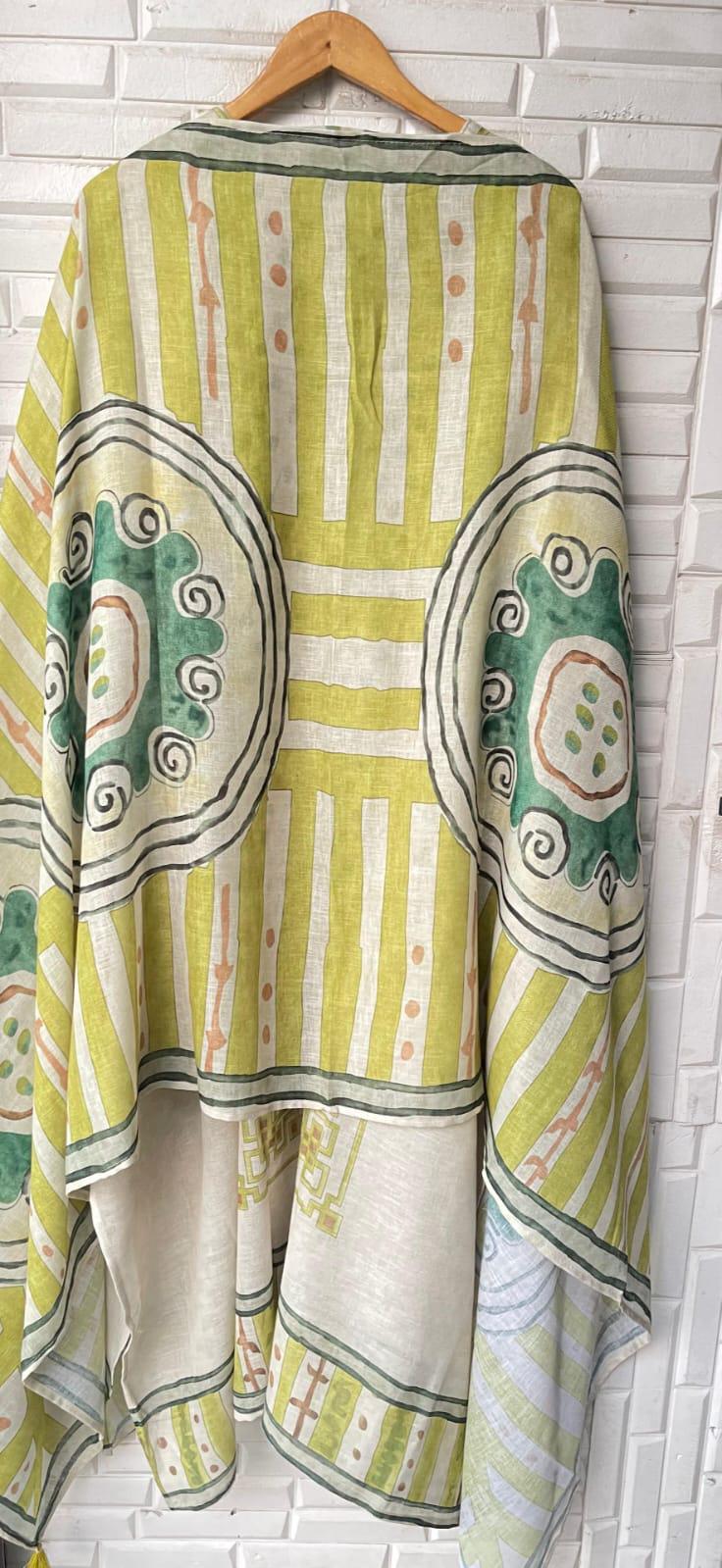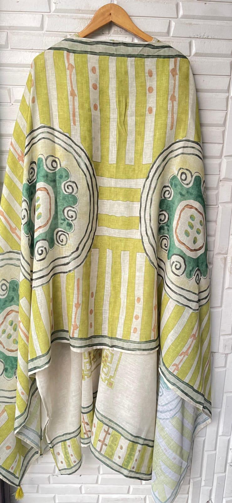 π pure linen cotton printed fabric dupatta with latkans