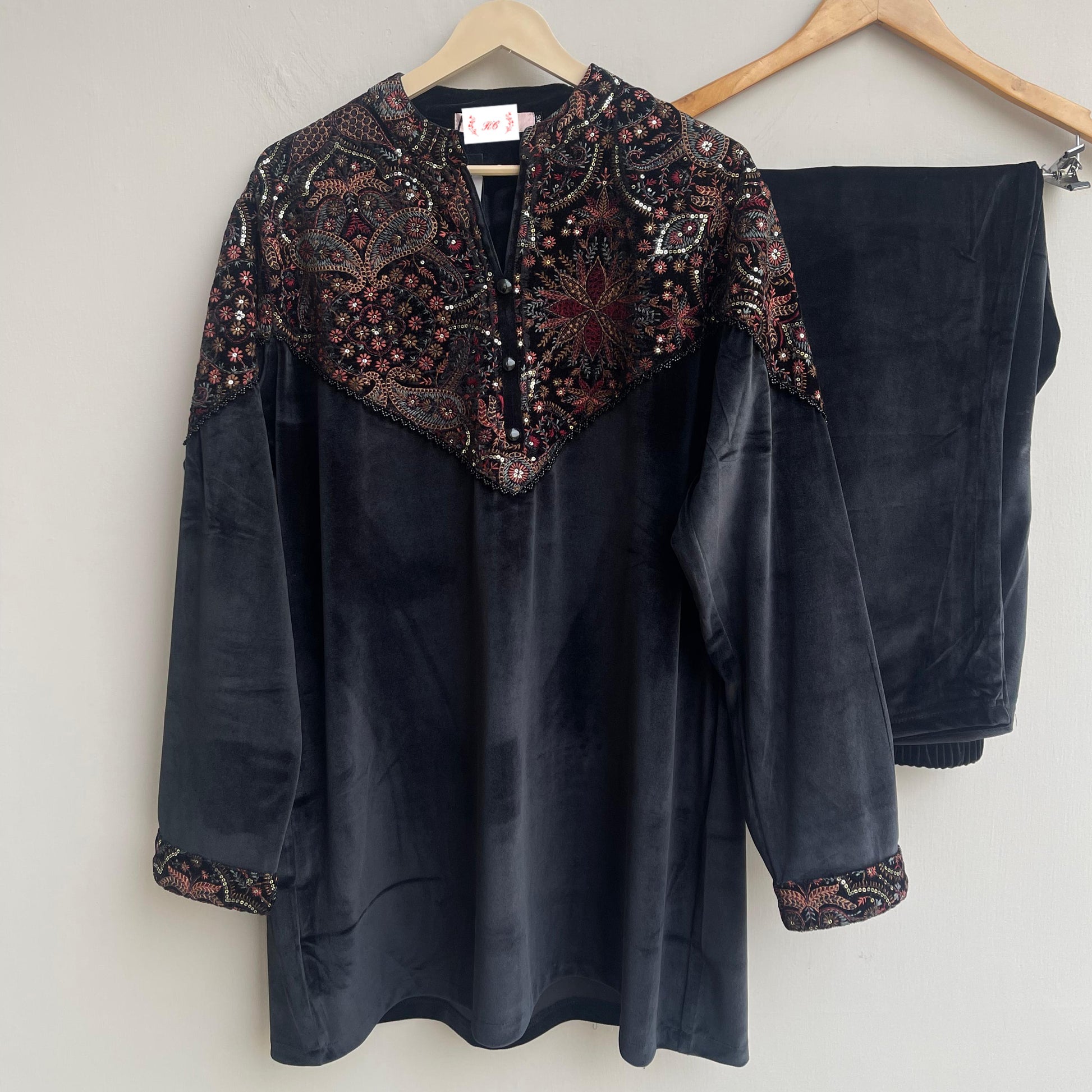 😊intricate resham sequins embroidered micra velvet stretchable top